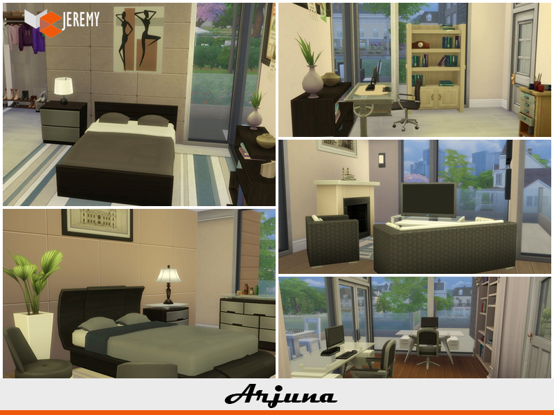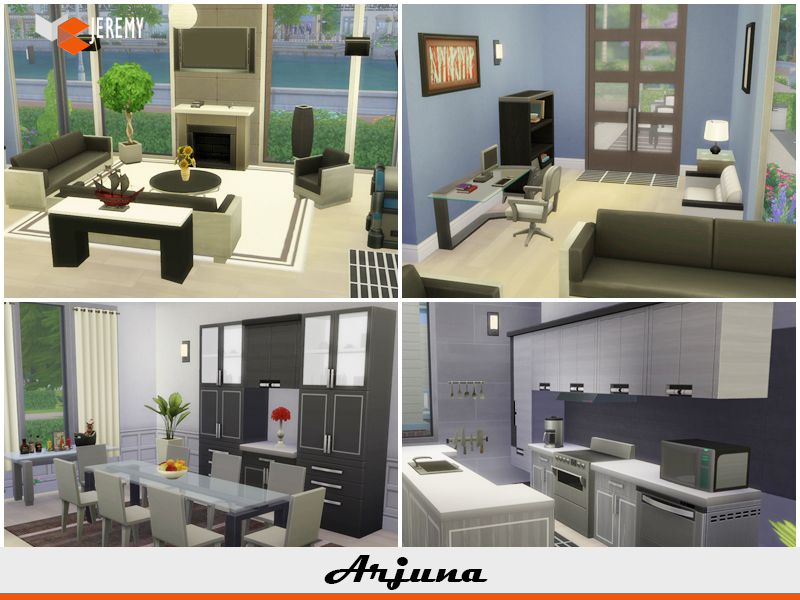 This modern house is perfect for small sim family (2 adults and 1 teen) . It has 2 bathrooms, 2 bedrooms, kitchen, dining area, livingroom, study room, pool and BBQ area.