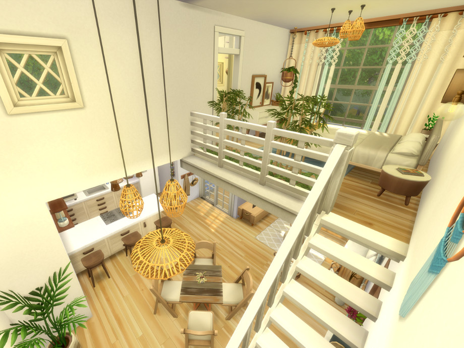 Lovely small beach house with a loft bedroom, perfect for a single sim or a couple who love a quiet lifestyle. Also perfect for a romantic getaway if you use it as a rental. The house has 95 floor tiles so it will count as a Tier 3 Small Home if you have the Tiny Living stuff pack. The lot is is 20x20, originally built on the Bedlington Boathouse lot.
