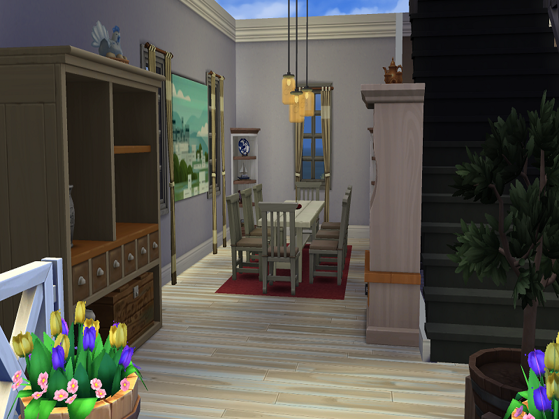 This is a newly renovated small home for those who are looking to start out fresh alone or with a special someone. The lot lays right in front of the bay so the view is beautiful. There is a lovely front porch that is big enough to fit a chair or two for your sims to admire the area. Once inside the house, a lovely cozy dining room is placed while to the right the room opens up to a living room and a cute kitchen. The bathroom is located between the kitchen and living room, while a small laundry room has been added beneath the stairs. The second floor is one bedroom and study room combined. If you want your sims to have a baby on this lot the study room can easily be transformed into a nursery. I have also added a small garden area to the side of the house if your sim likes to grow their own fruits and vegetables.