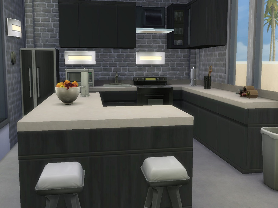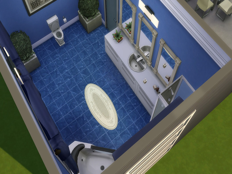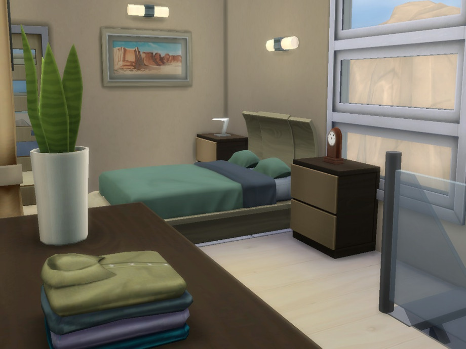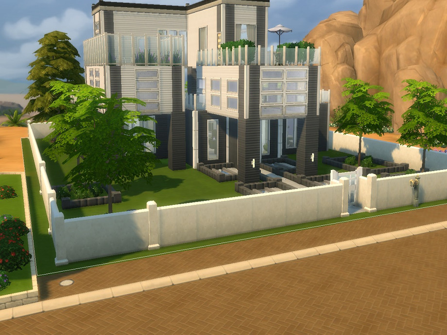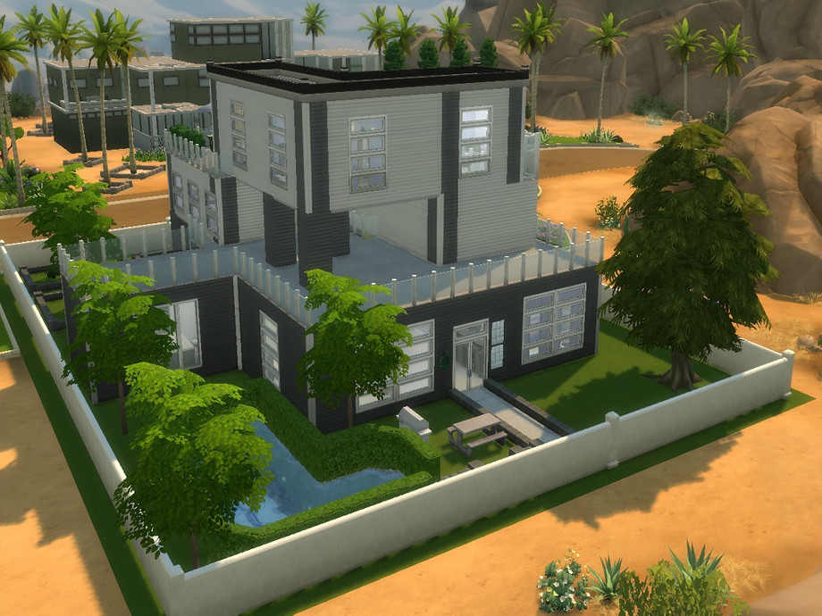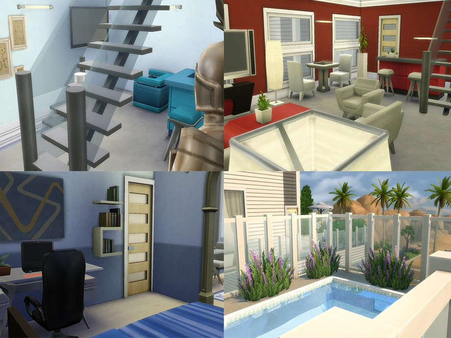 House is great for 6 Sims.House has 1 bathroom,2 bedrooms,2 living rooms,1 kitchen and 2 custom room(room for fun and exercise).You can see first big living room which is together with kitchen and dining room,Large space is great for parties and if you have your own wish you can put some stuff here,and of course you can build another room,for example kids room.Outside is also large space for play and I put big pool behind house and one smaller pool into balcony.I hope you like it and enjoy :) :) :)