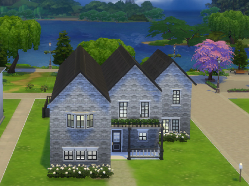 Black and White is a simple suburban home. Everything is black and white. It's my black and white house in my color series. It includes two kids bedrooms and a master bedroom as well as three full bathrooms and one downstairs bathroom. There is extra room for another small room to be built if your sims family decides to expand. The outside bricks on the sides are black and the front ones are white to go along with the black and white theme. It is a bit of a cross between contemporary and rustic and Victorian styles.