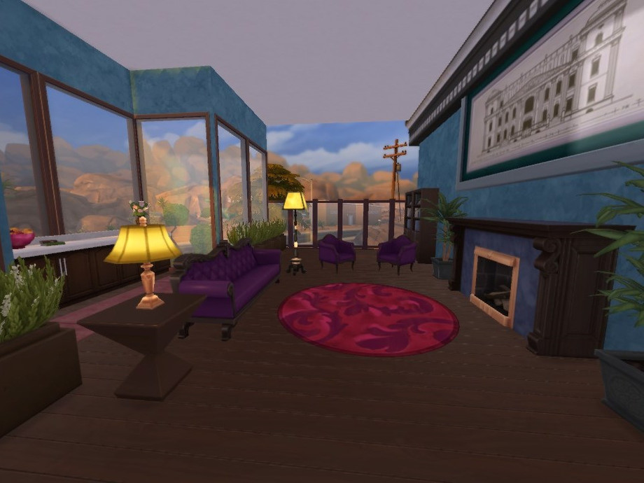 With it's unique colors and style, this spacious, nature filled, 3-stories house will take your breath away. It has two beautifully styled and unique living rooms, an open and fresh kitchen, a dining room, 2 bedrooms, one bathroom, a gym, and an activities/playroom. It also includes 2 spacious sitting areas/lounges, OUTDOORS. It has a mix of antiquity and style, a mix of colors and wood. It also has a a rooftop with a view of the whole town, great for hosting parties. So fresh and airy, your Sims wouldn't want to leave their home.