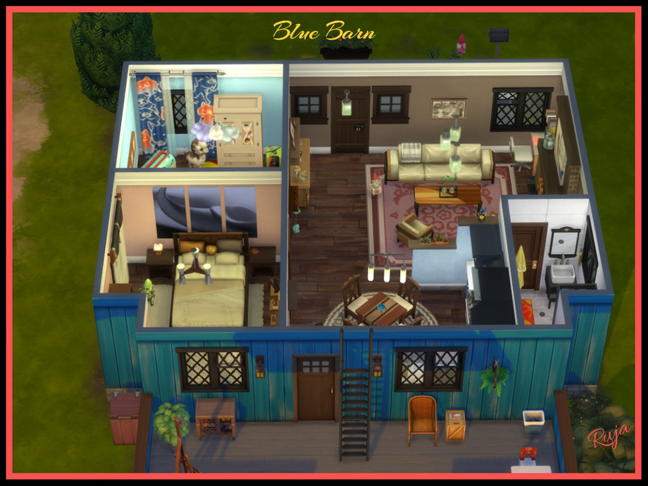 Blue Barn is a cute little house with two bedrooms and a bathroom for a small family.