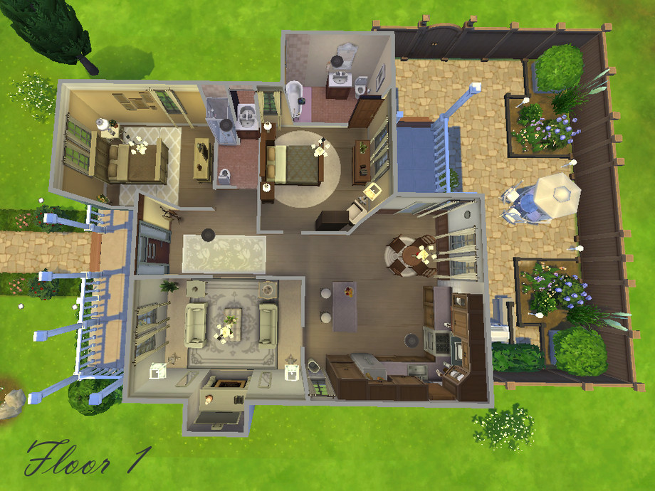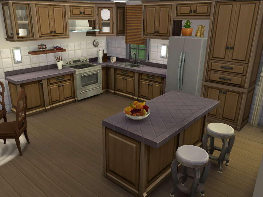 The Bodacious Bungalow is a classy two bedroom, two bathroom home in which four sims can comfortably reside. It is complete with a cozy living room, spacious kitchen and a fenced in patio perfect for outdoor parties!