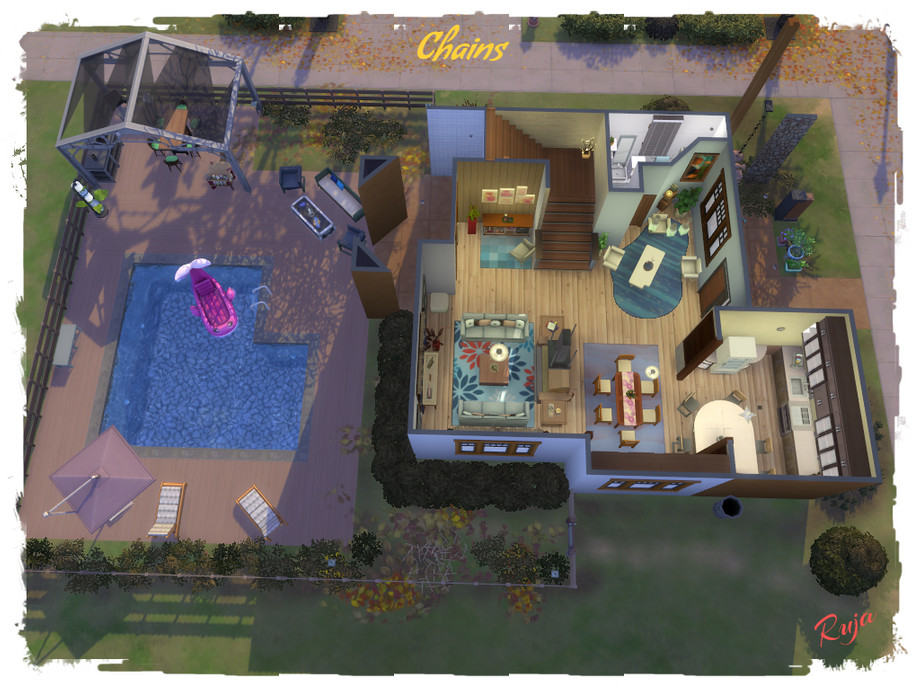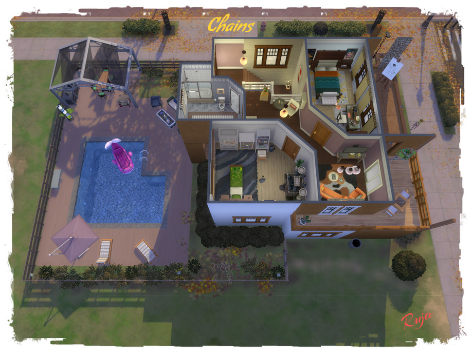 Chains a large comfortable home with two bedrooms and two bathrooms. Also a wide garden with swimming pool and barbecue.