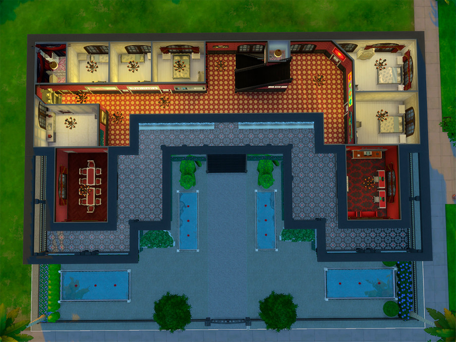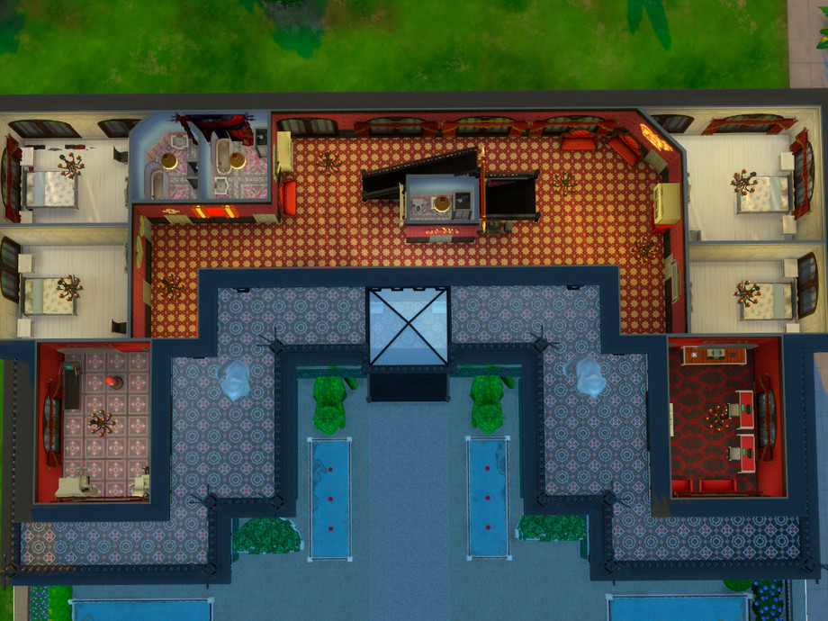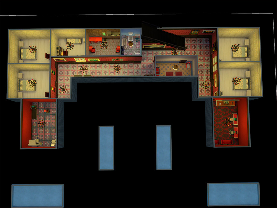 a nice entrance. the kitchen. two bathrooms. 5 bedrooms. a gorgeous victorian/gothic/chic style dinning room. to have a nice meal OR to sit and wait the ghosts of previous owners to chat with them! a nice multimedia/entertainment room.