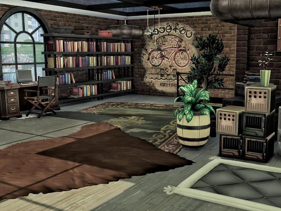 Here is a spacios industrial loft in the centre of the city. On the ground floor it has a kitchen, dining room with a library and living room with a cozy fireplace. On the first floor there is a little greenhouse with a lot of flowers, from which you're coming to the second floor, which has a bedroom and bathroom. Fully functional. No CC.