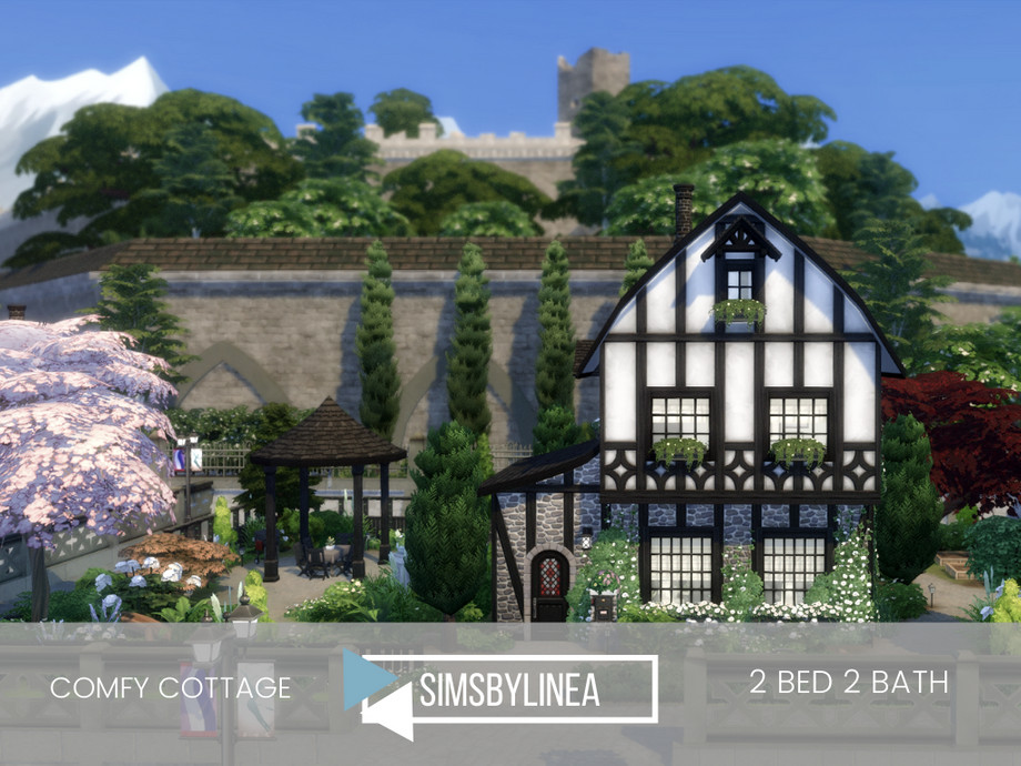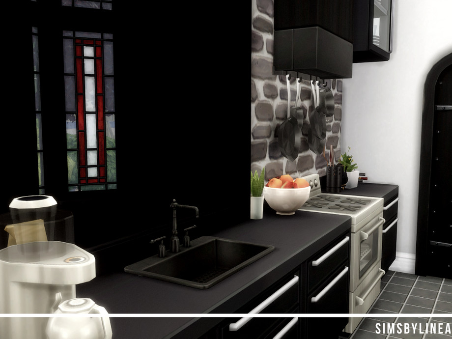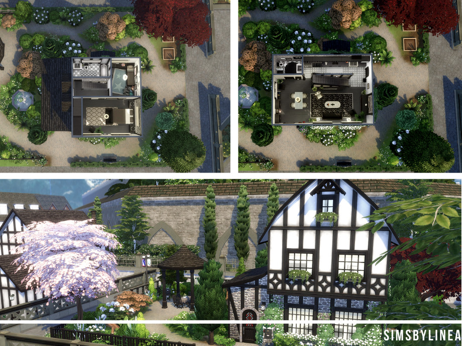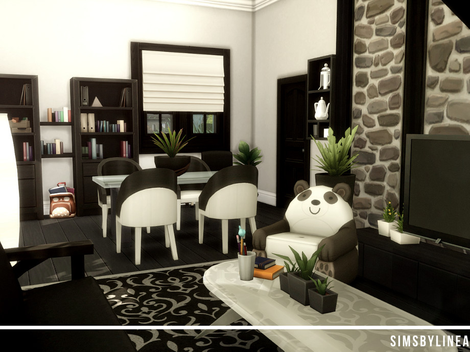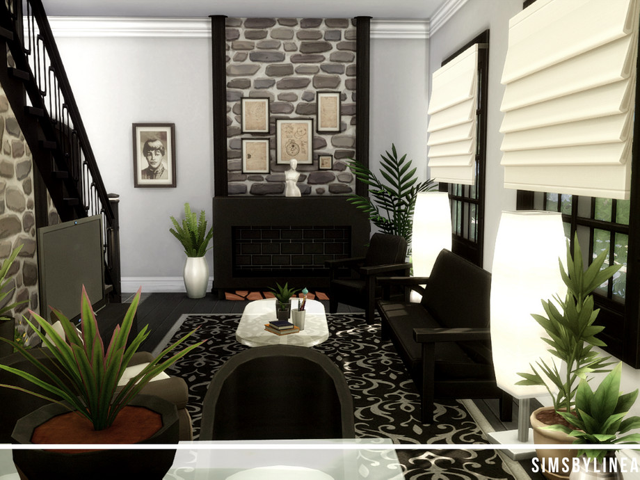 Just because this cottage is old and overgrown, it doesn't mean this can't be a contemporary and cozy home! The colors inside match the exterior, lots of plants and black and white make the home look more luxurious than it may actually be. Offering space for a family of two or three sims, this house is a good and modest home in the center of Windenburg, and using only the Basegame and Get Together, it is an all-rounder for everyone!