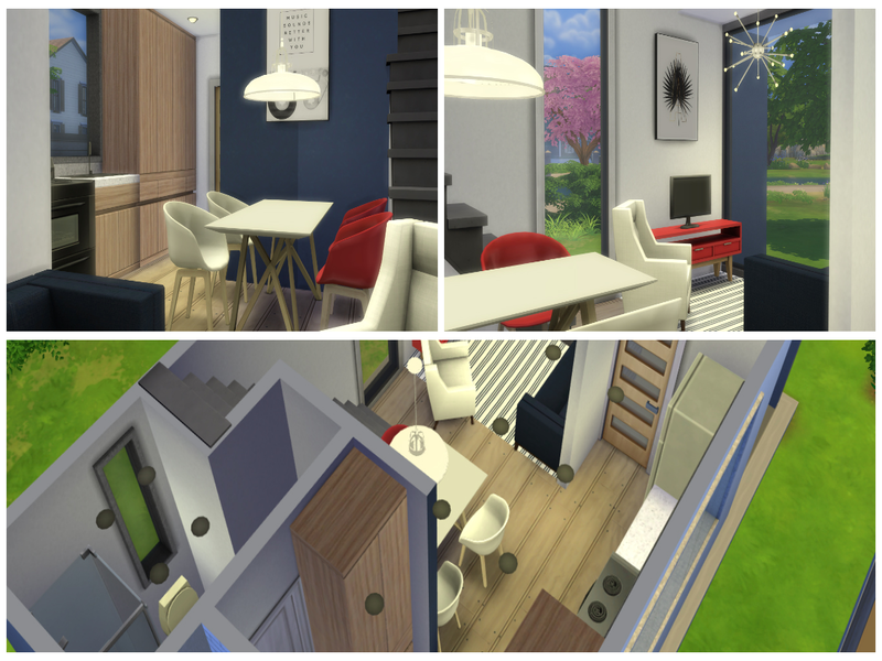 A modern compact starter house with a value of 23000 simoleons. The house has 1 bedroom and an open plan area with living room, dining area and kitchen. Hope you like it and thank you for downloading :)