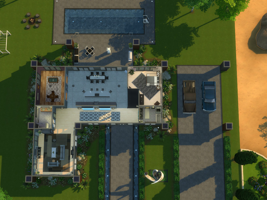 Large contemporary home. Four bedrooms and three bathrooms. Large eat-in Kitchen, Game room, first floor master bedroom suite. Balconies and natural Light galore. I built this house a while ago and it was my playthrough house at the time. No CC was used in this home.