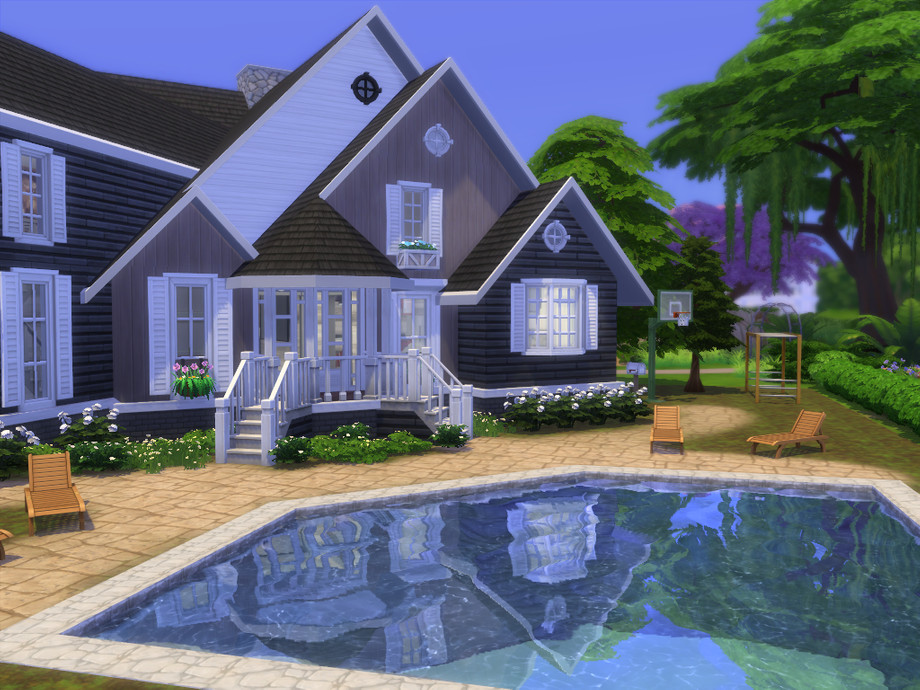 The villa has a large yard with a swimming pool, basketball court and grill area