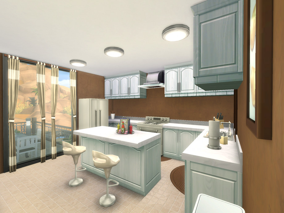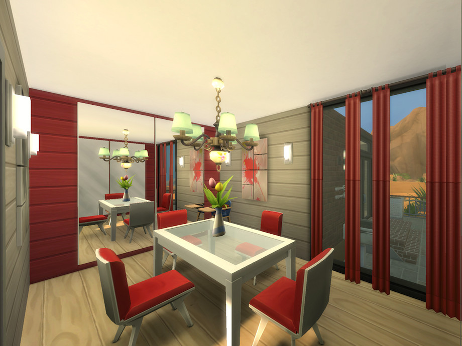 This home is ideal for a small, modern family looking to live among rock, dirt and sun. With tons of color and a cute floorpan; first floor offers a spacious living room, kitchen and dining, along with a small and refreshing outdoor patio. Upstairs has a large master bedroom with a double sink master bath and a toddler's bedroom with its own bathroom.Make Desert Sun your sim's next home :D