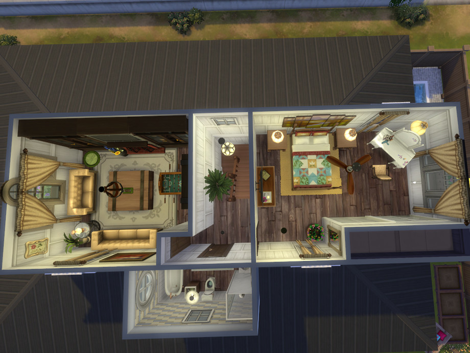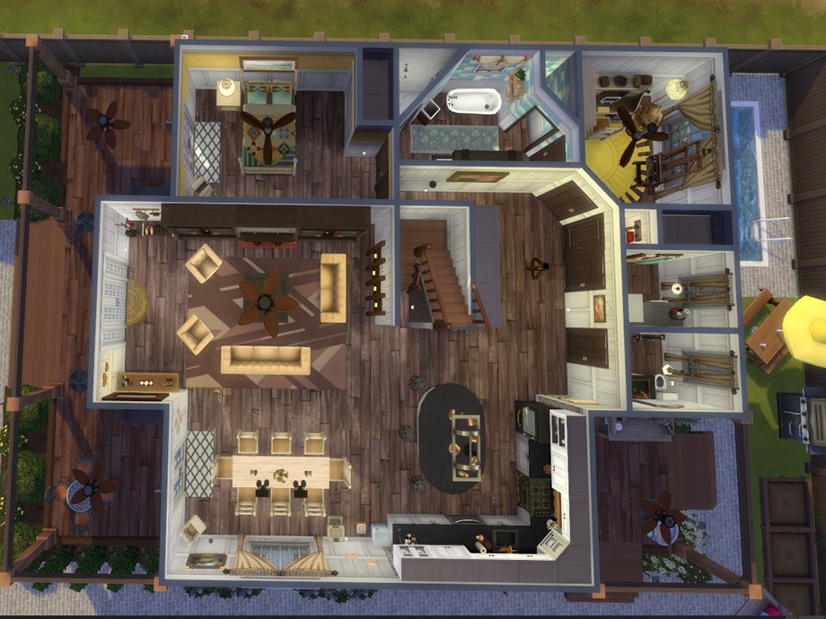 This is my sims version of Edgewater located on the Drummond House Plans website (Plan 3511). It's your classic farm house design with beautiful porches in both front and back, a swimming pool, and lots of places for your sim to curl up and read a book. This design is perfect for your 30x20 lot and was built with no cc. Enjoy