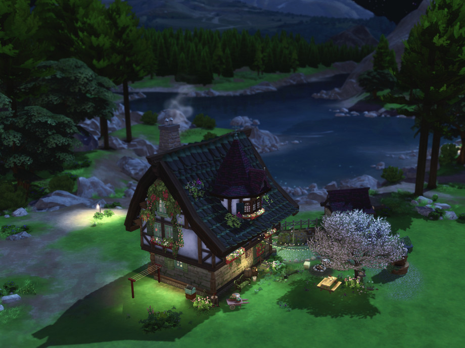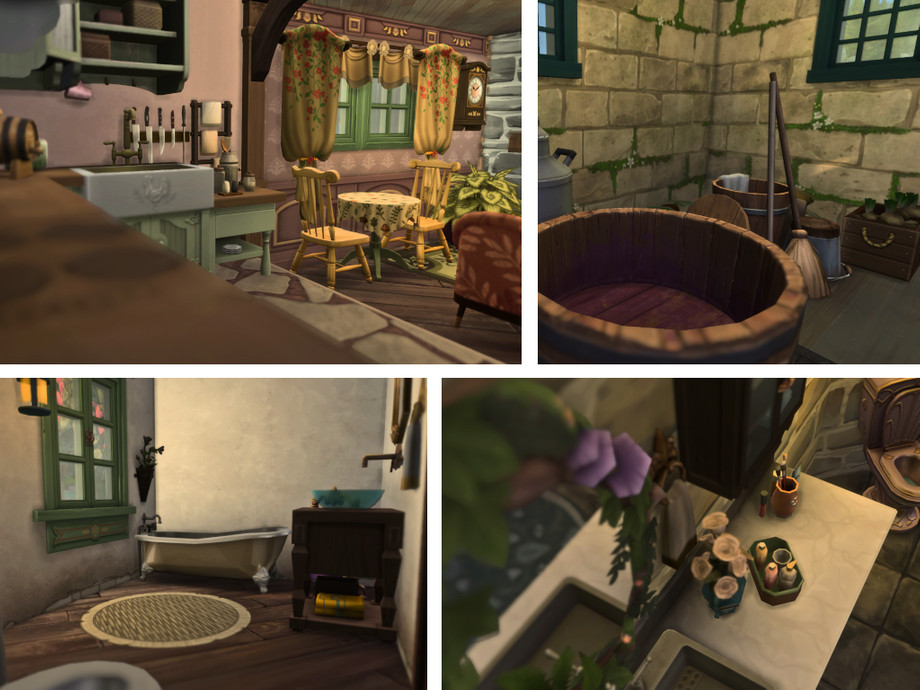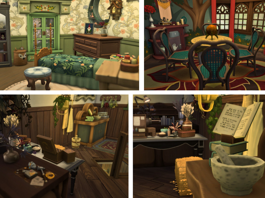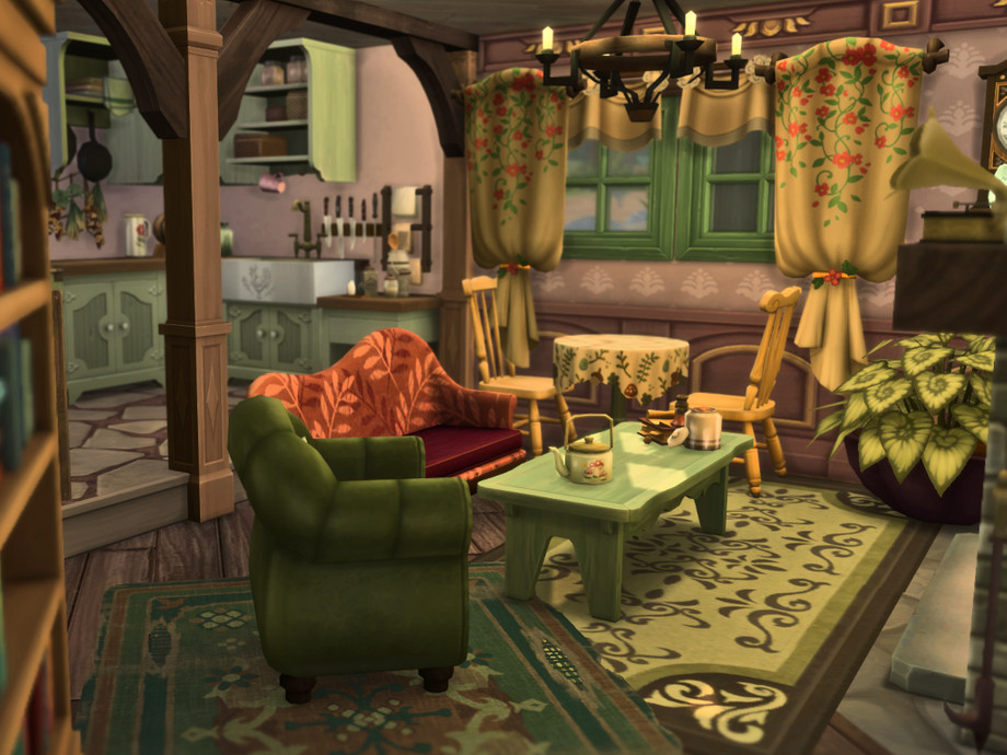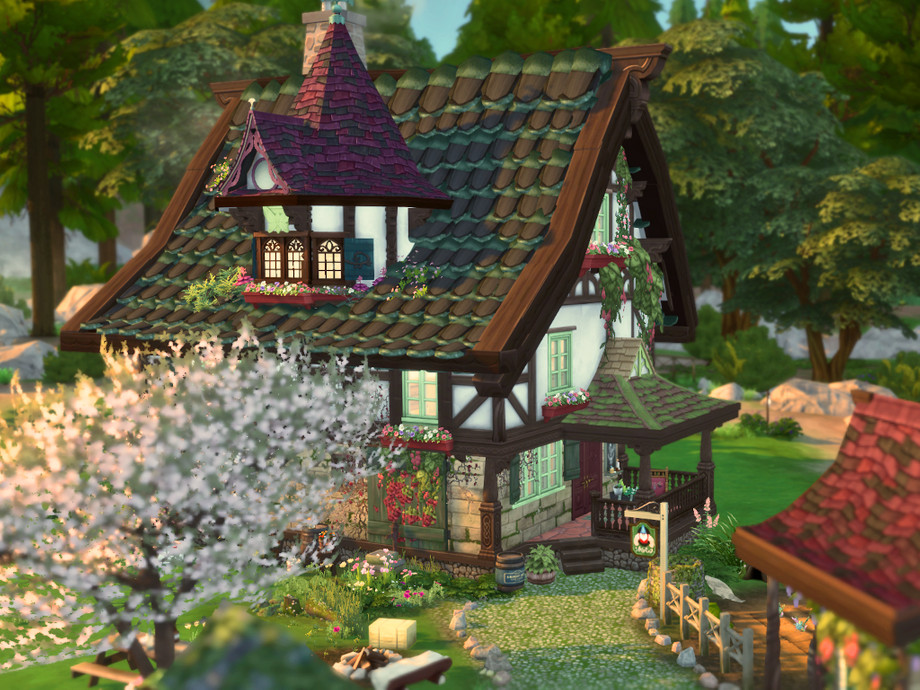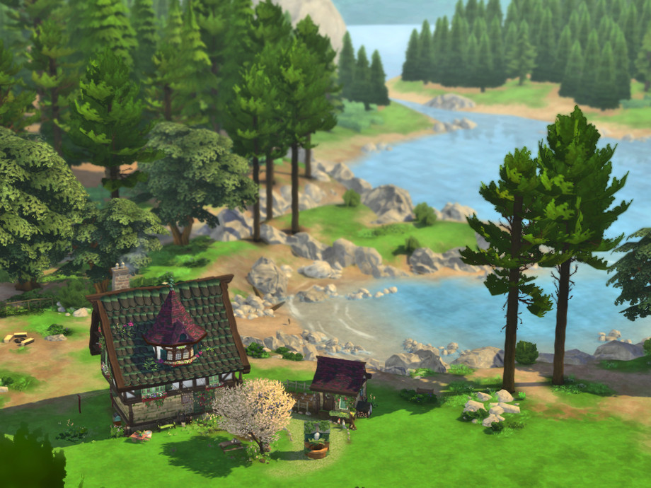 Sims 4 — Fairy Tale Hut by VirtualFairytales — A cozy, whimsical hut deep in the forest, being visited by magical little