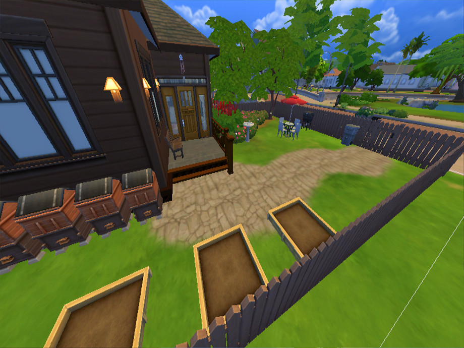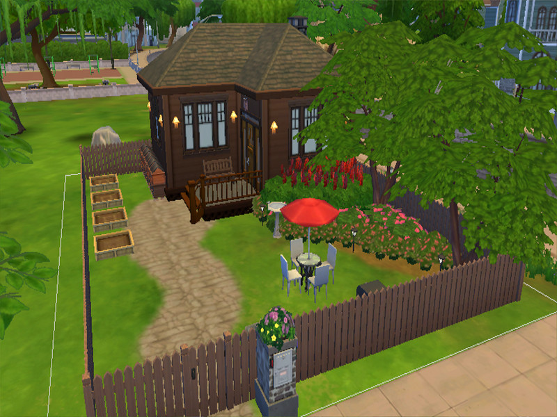 In this little, nice, suburbian wooden cabin all sims loves to be. They can be young adult or even elder they'll love being in here. With the nice, pleasant bworn walls, and decorations, the flowers in the garden and with living in a tier 2 tiny house.
