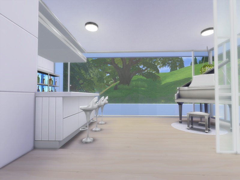Modern Home featuring open kitchen, dining area,entertainment area with bar.