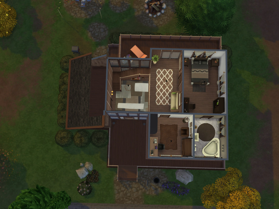 This house is a cabin style building originally situated in Glimmerbrook. Its interior is a mixture of rusticness and modernity. It has two floors and a wonderful mezzanine.