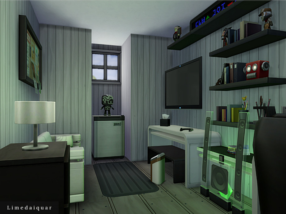 Gemini is a home with sort of a contrasting nature. The interior theme is black and white with a bright red staircase, and in the attic there's a tech room dedicated to a gamer, and across; an artist's loft.