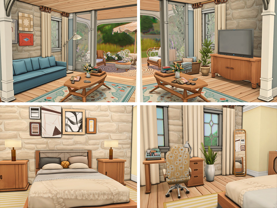 I really wanted to build something small and cute by the shore in Brindleton Bay, just a cozy two bedroom house with that warm, breezy feel to it. It feels like the kind of place where you open all the windows and just let the sea air in! I love how soft and calm it turned out, it just makes me happy looking at it. Hope you'll enjoy! x
