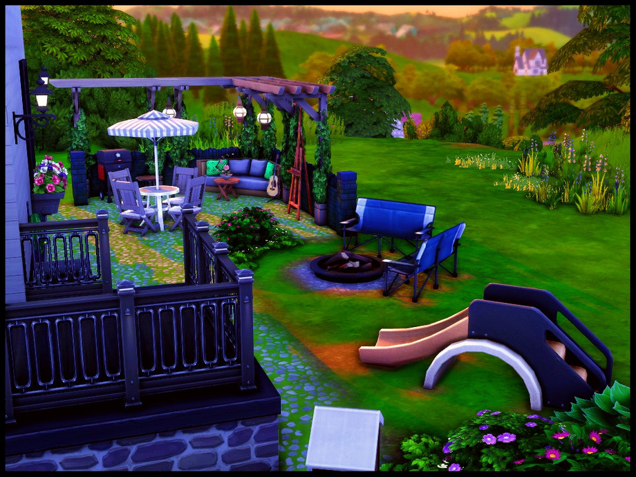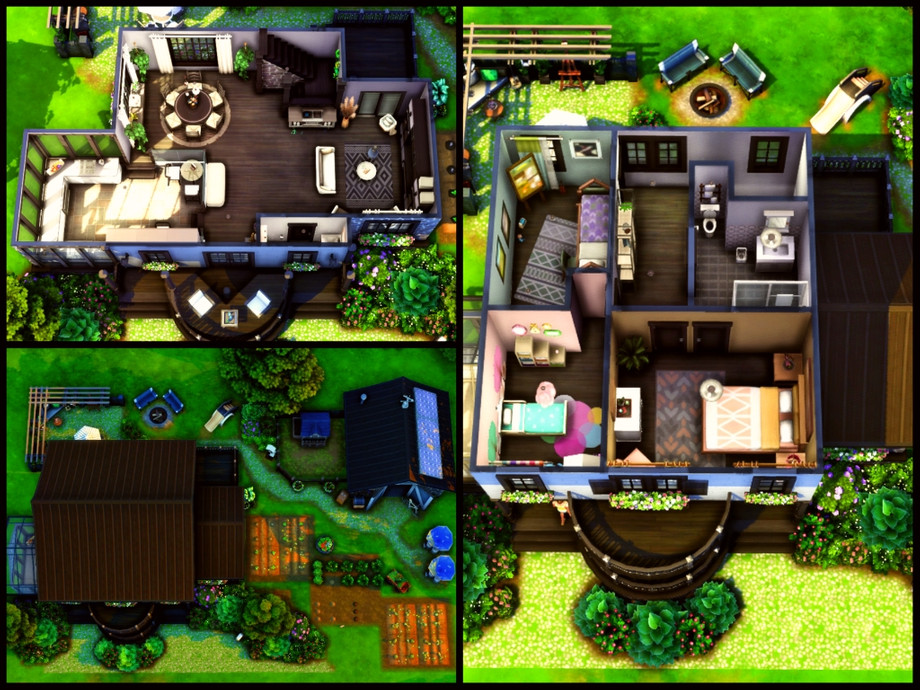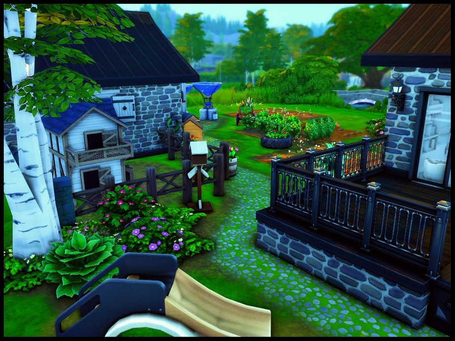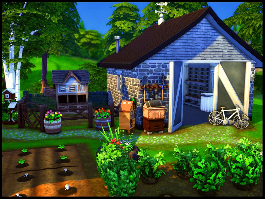 Hobby Farm - A 3 bedroom modern family farm home. Step-down kitchen, dinning area, living room and small bathroom. 2nd floor has 3 bedrooms and full bathroom. Fully landscaped yard with large garden, shed with fireplace, wall planters, candle maker, chicken coop, sitting area, bbq with dinning table and firepit. No custom content used, Enjoy!