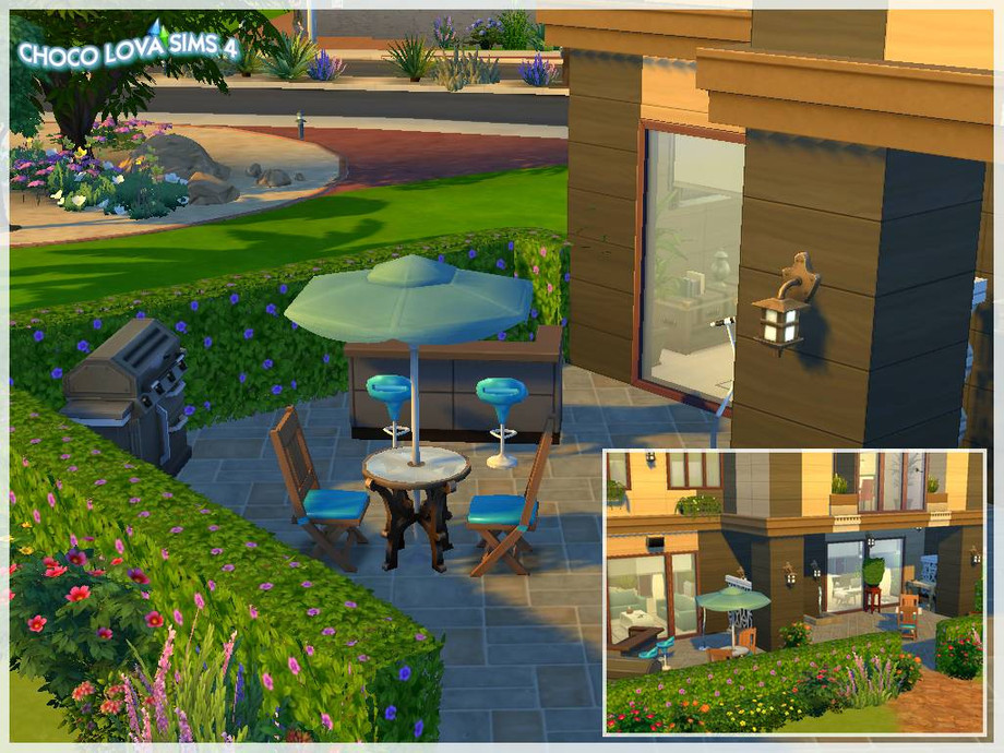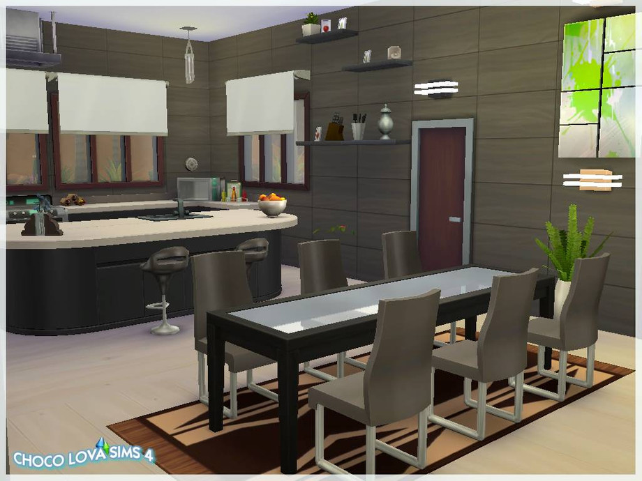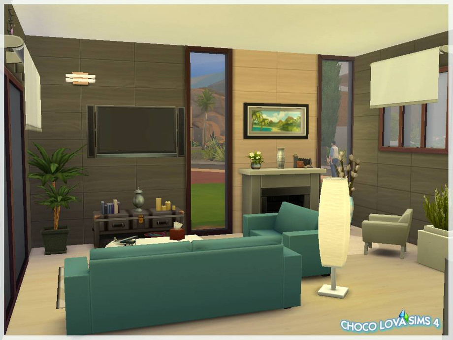 Modern Wood is a family home Sims. Ideal for a couple with two children. It has a large master bedroom with en-suite bathroom.