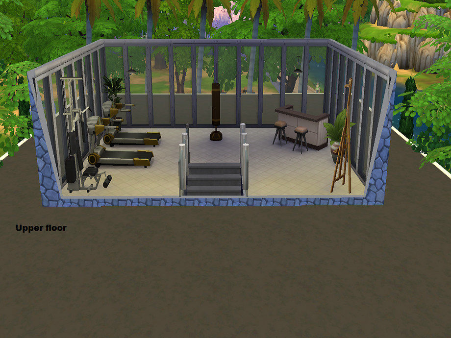 Upper floor: Gym room with a bar.