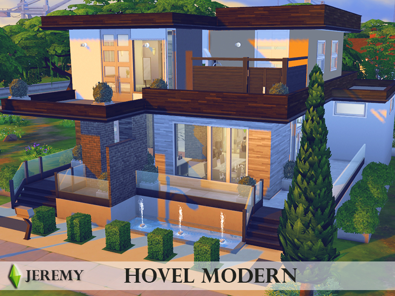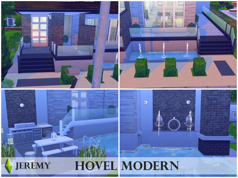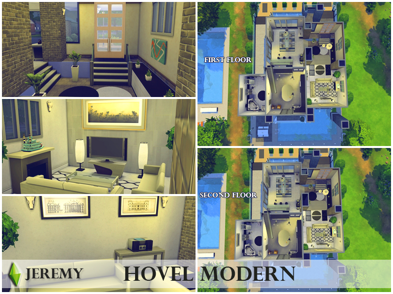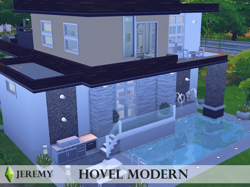 This modern home is great for any sim family. It features two bedrooms, two bathrooms, pool and a modernly decorated garden with beautiful terrace.