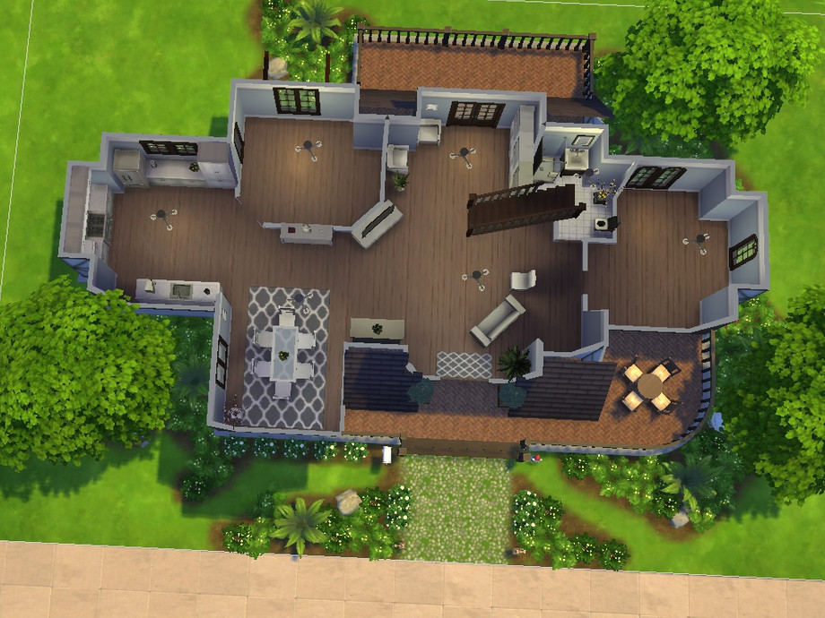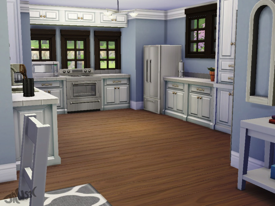 This cozy home is perfect for any growing sim family. It features five bedrooms and three bathrooms spread over two floors. Partly furnished. Needs the recommended item to install correctly - installing without this CC will result in bare walls.