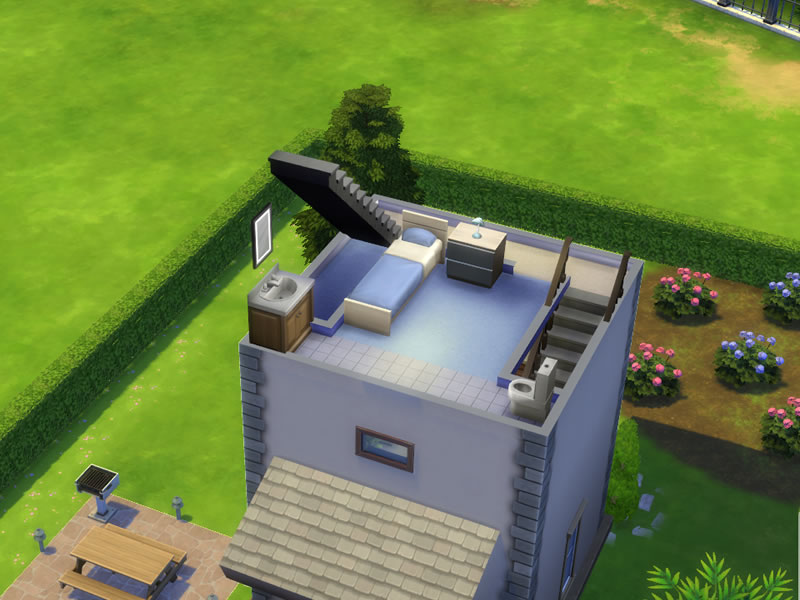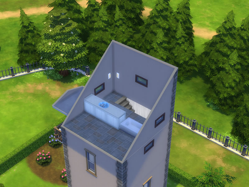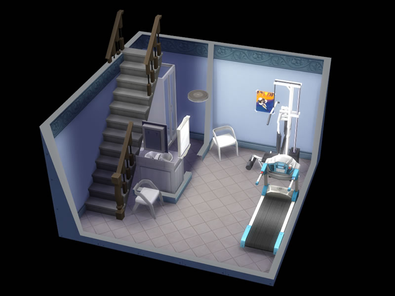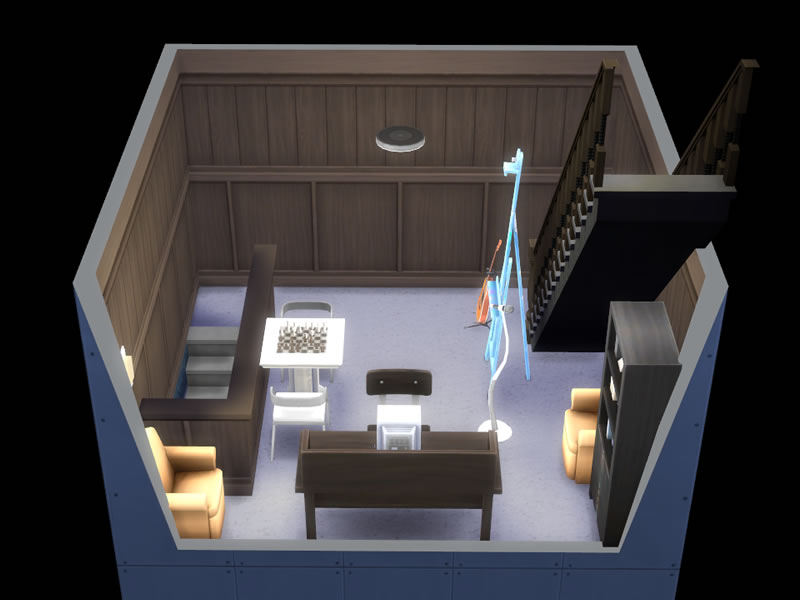 Lofty Living! The small footprint will fit on any lot and leave room for your outdoor activities. Entrance floor provides a cozy sitting space with a TV. Up a floor, the kitchen with everything you need to get started. Next up, a single bedroom with its own bath. Top floor, the master bedroom with a private bath in the loft. Going down: the study with plenty of amenities. Sharpen your skills! And the bottom floor, a workout room with its own shower and bath. All you need to live comfortably!