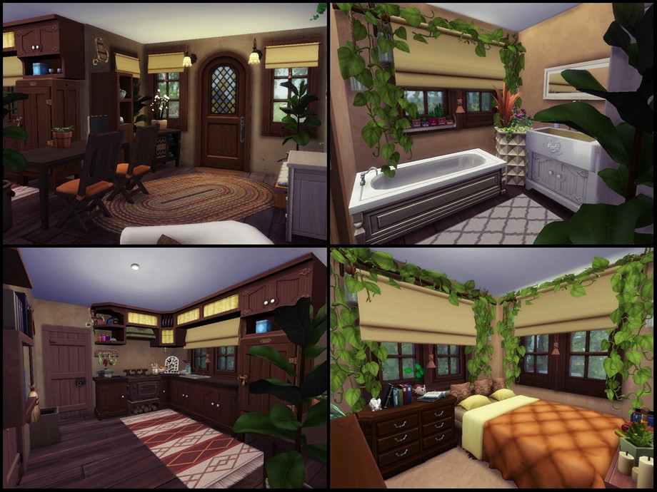A small, slightly damaged house for a lonely Sim. Rest from the hustle and bustle in a calming nature.