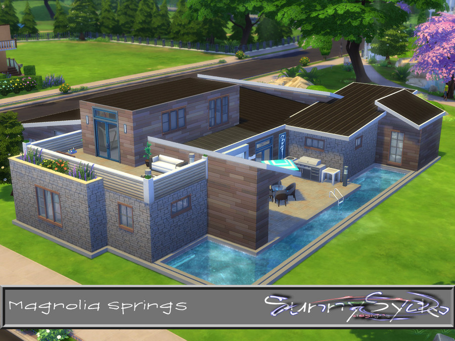 Has your sim had a long day at work? Are the kids driving you crazy? Come enjoy a quiet read on patio, maybe swim laps at the pool, sit by the fire at any one of the 3 fireplaces in the home, or watch a movie with the Evening Falls collection. Need to unwind? How about a health and fitness center upstairs and for all those sims who love to entertain, how about a nightclub in the basement. This open concept floor plan has kitchen, dining, and living room all open. 3 bedrooms and 1 study along with 4 full bath on this 30x30 lot. Enjoy.