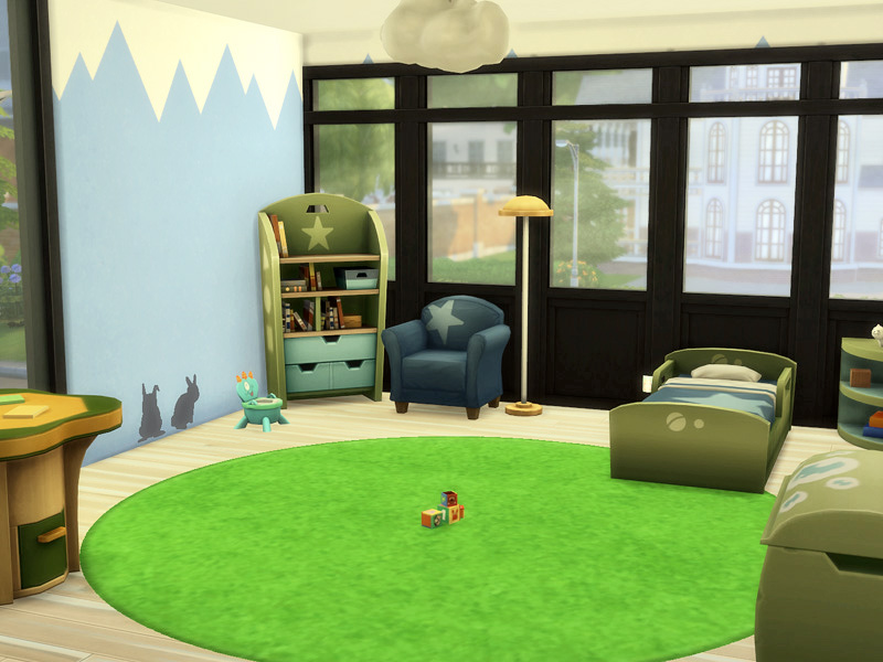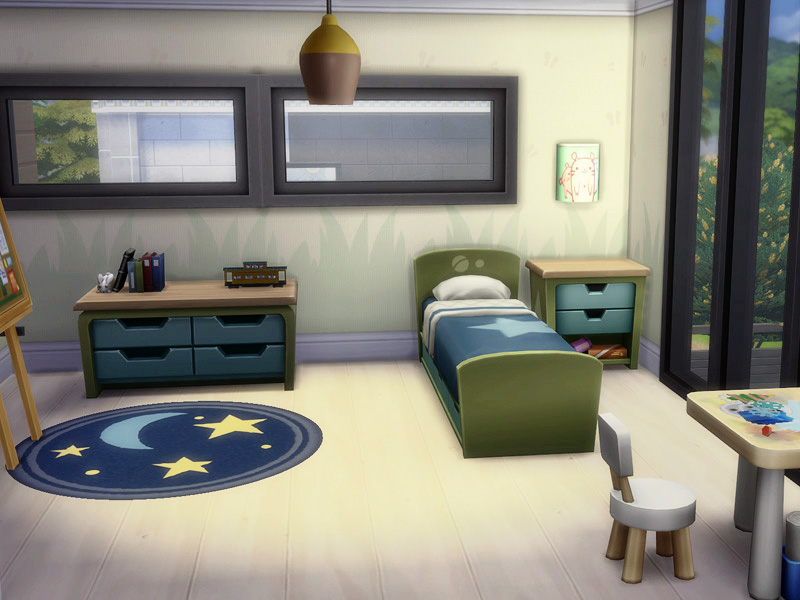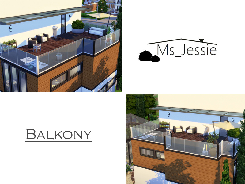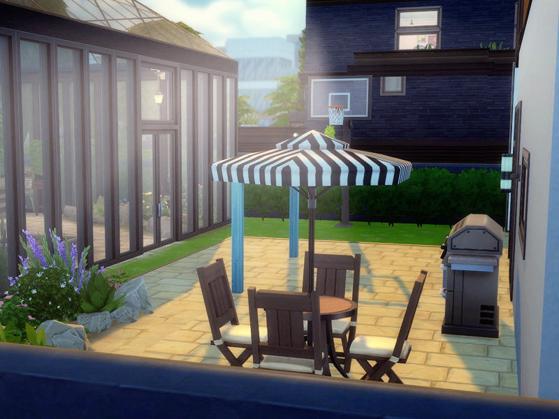 On the first floor are three bedrooms a bathroom and a small office. Upstairs is a balkony where your sims can enjoy the weather or do some yoga.
