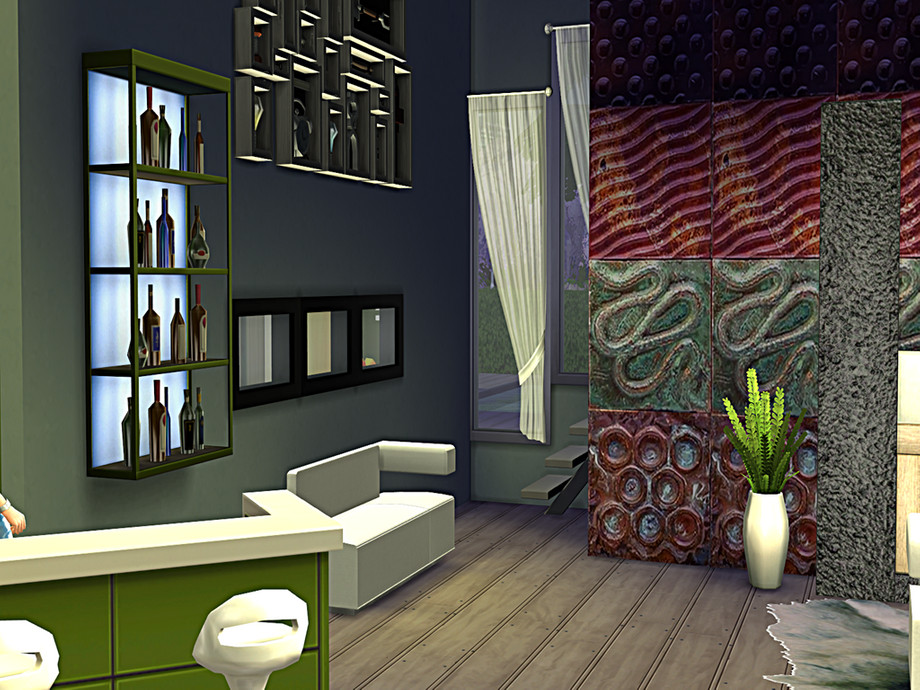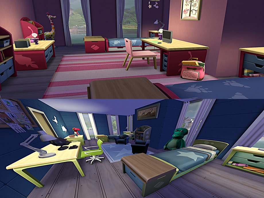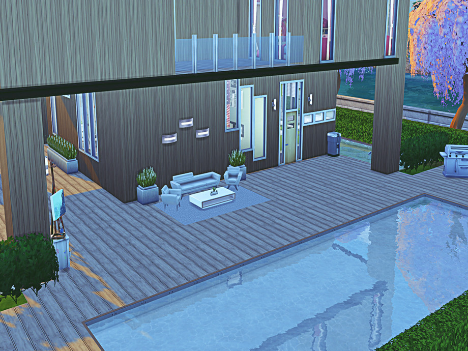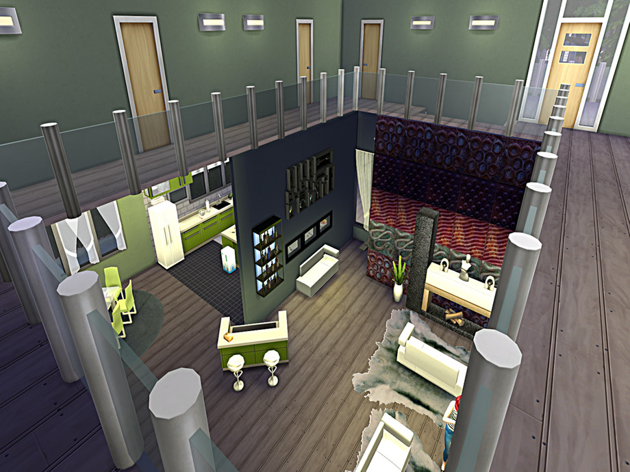 Lovely 3 bedroom home for the growing modern family. Unique design. Master bedroom with closet and bathroom. Children's bedrooms each with 2 single beds. Smal gym area and upstairs study that is open to the living area below. Contains CC. THANK YOU TO ALL THE CREATORS!!