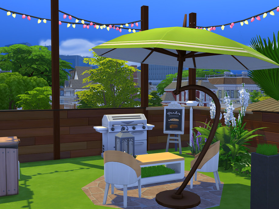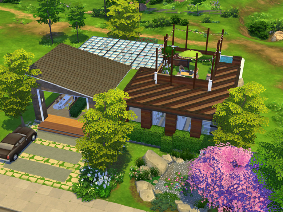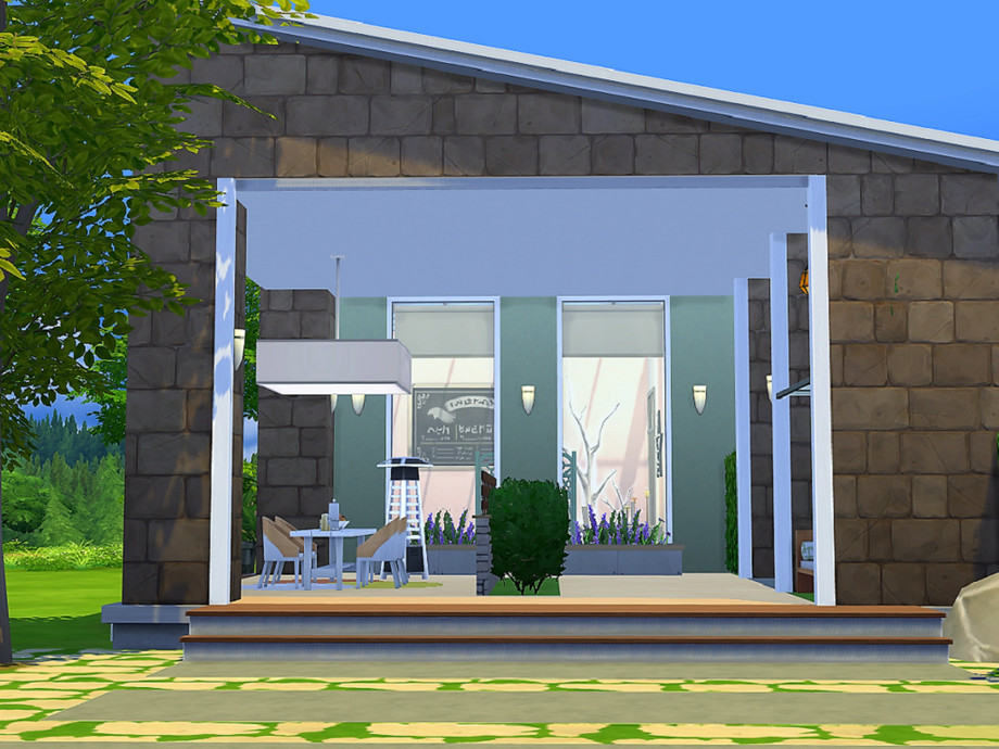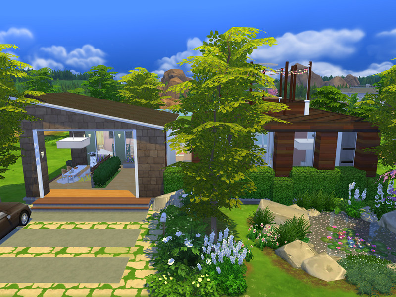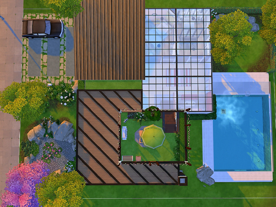 This is a modern house with lots if light and personality. This build includes: a raised pool, patio area, two ponds, small garden, roof garden, kitchen, living room, dining area, 2 bedrooms, one bathroom. I hope you like it! (This lot is fully tested). Have a great day!