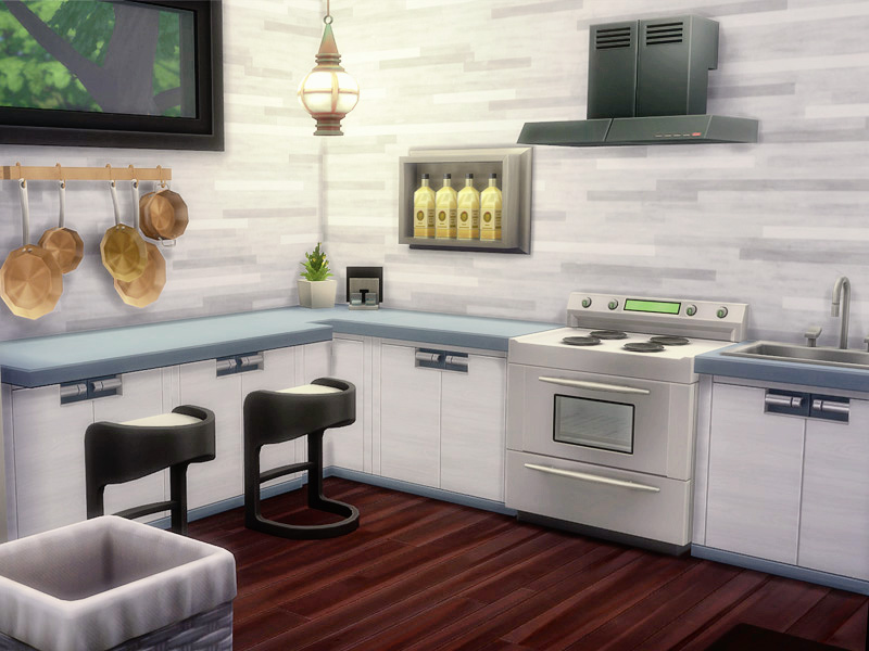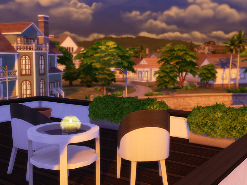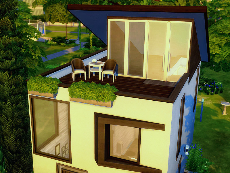 This modern house with a beautiful terrace on the top was build for a single sim or a couple.