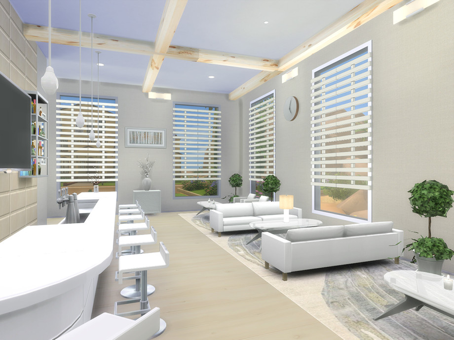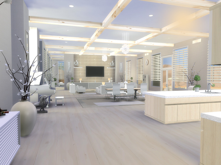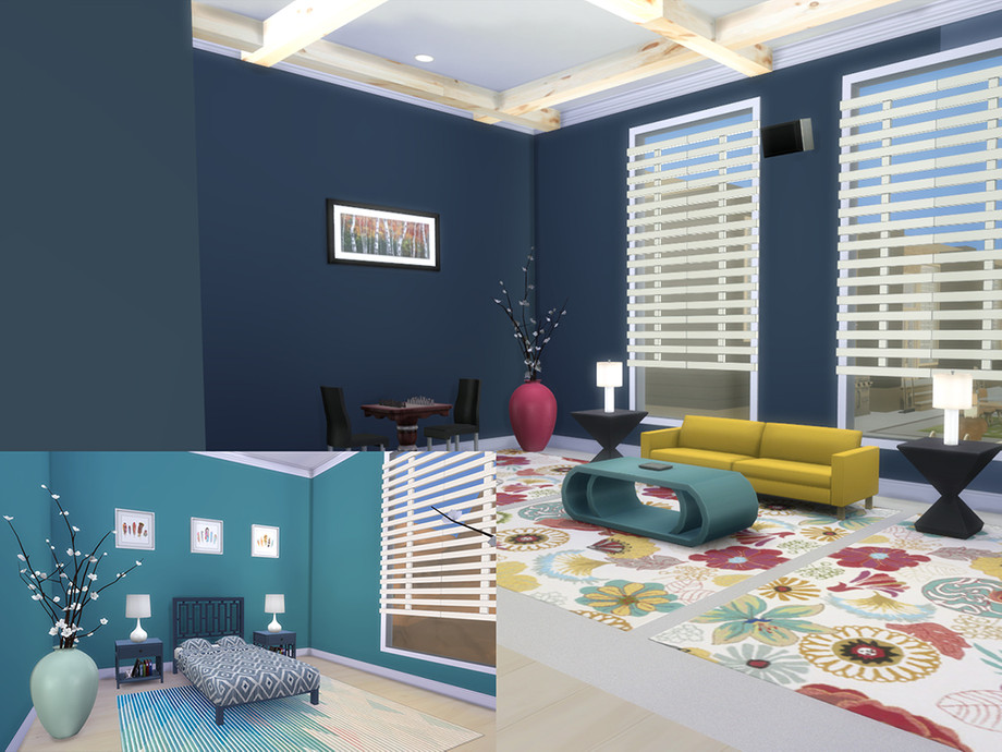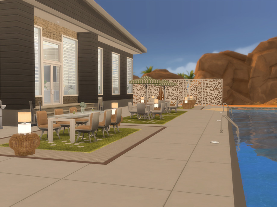 In addition it has a gym room and a nice outdoor area with a pool for entertaining your Sims. Enjoy.