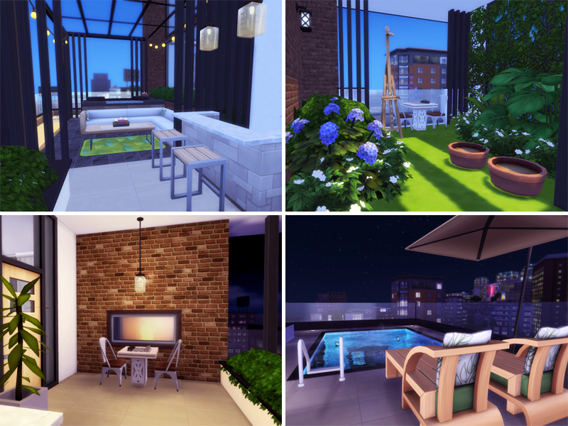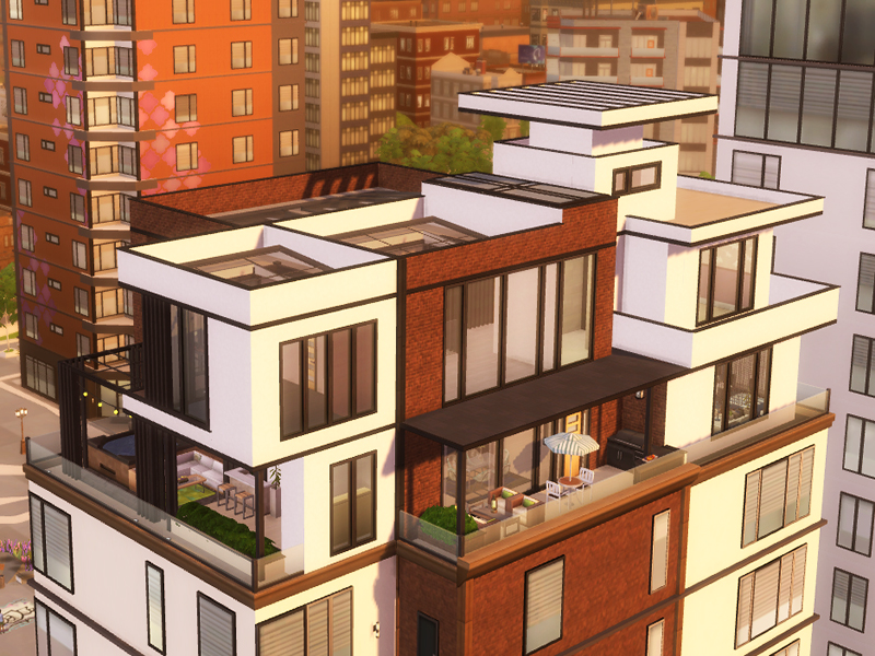This Modern Penthouse for a family living their life in the city, features 3 bedrooms, 3 bathrooms, a small garden and pool, 2 stories.