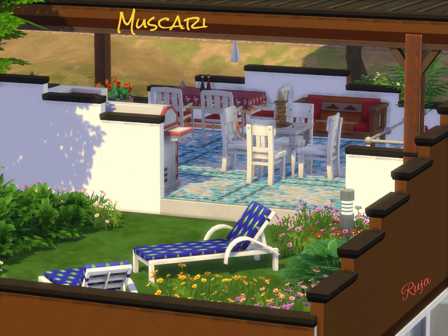 Muscari, a lit little house. It has almost everything in a spacious environment. Basically one bedroom, two bathrooms, kitchen, living and a large terrace with barbecue.