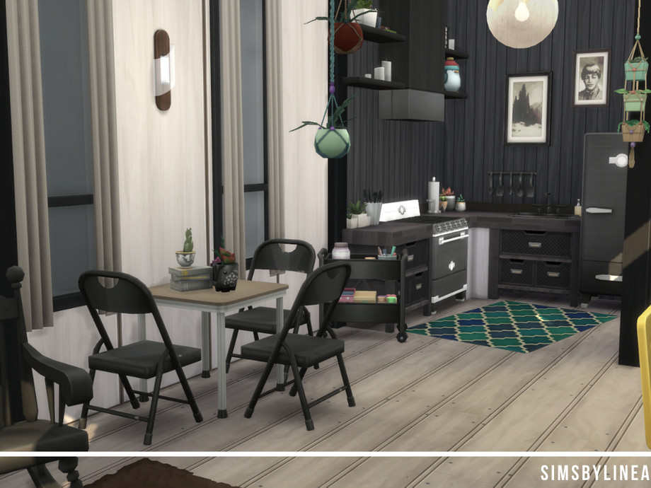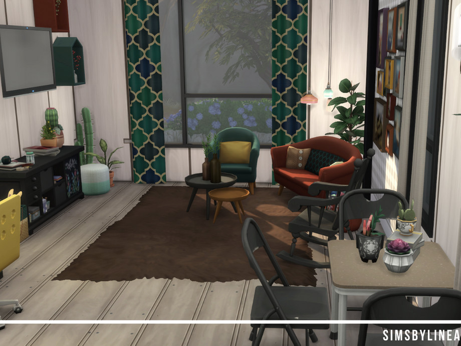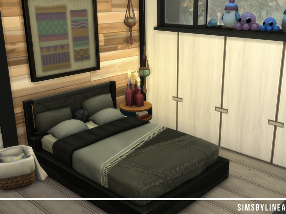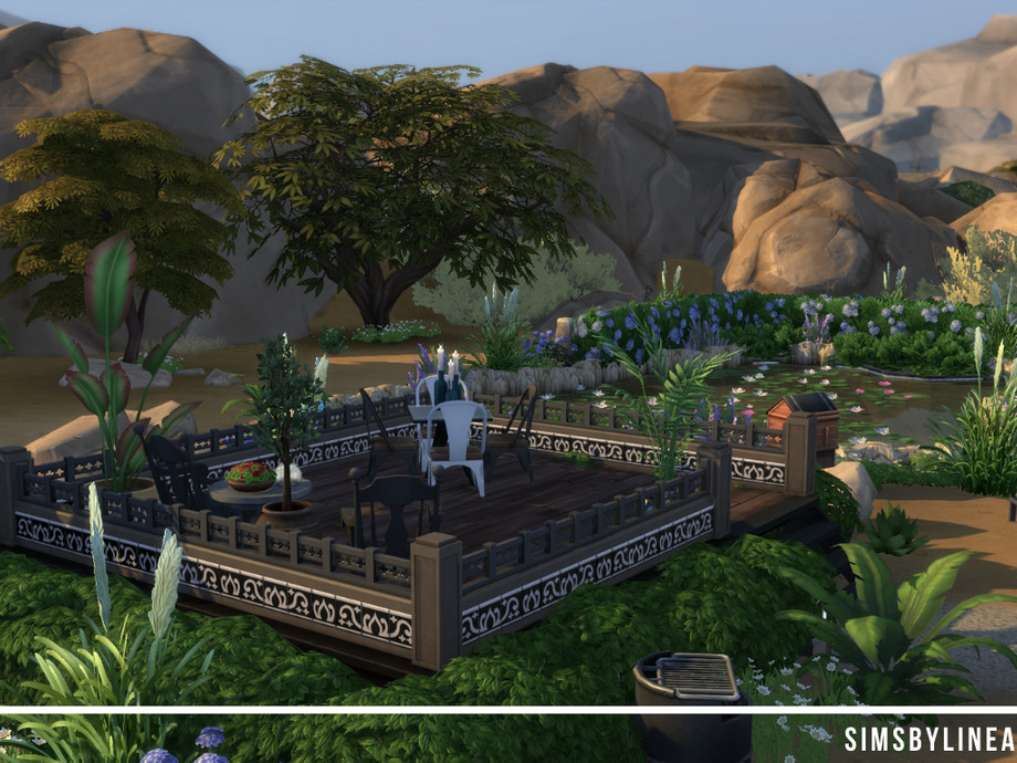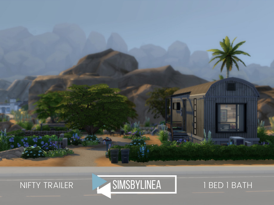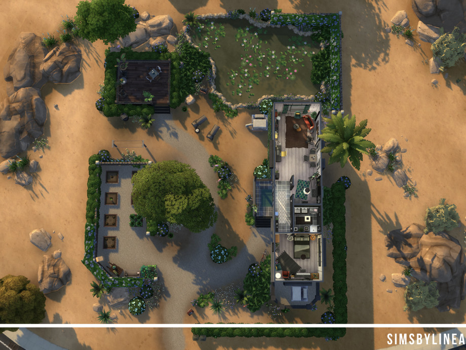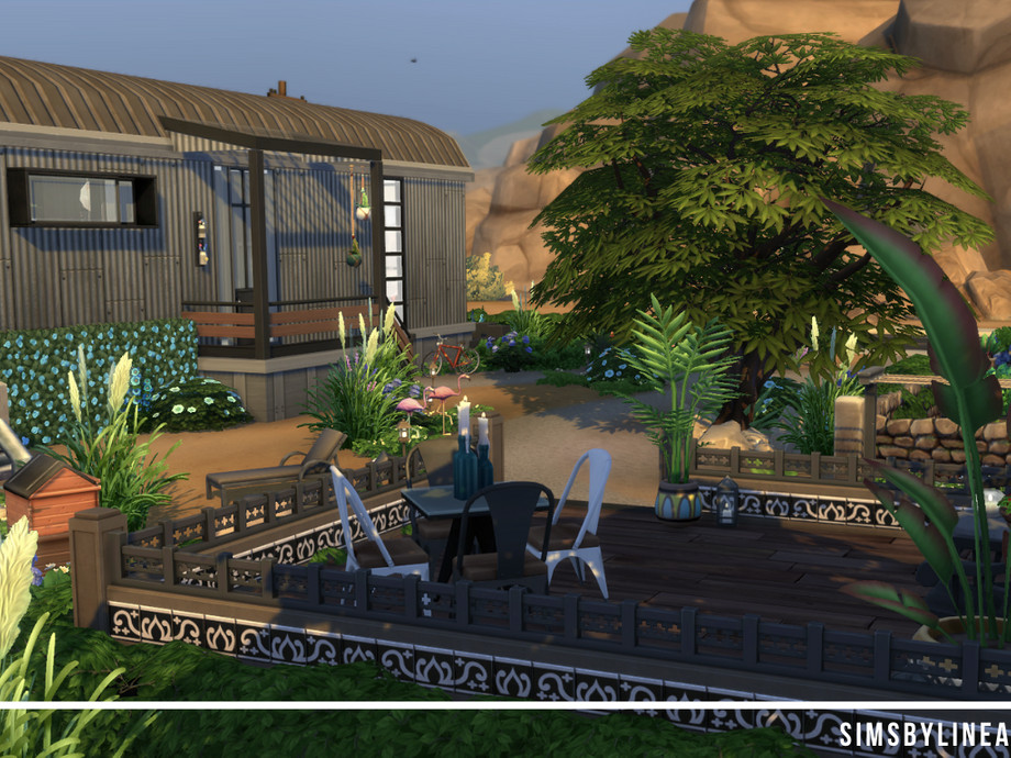 Slipshod Mesquite in Oasis Springs got a moody and crafty makeover! This trailer now is a diy paradise, with knitted items everywhere, a small vegetable garden and a beautiful pond, overlooked by the new sun deck. The home offers one bedroom and one bathroom, all in a dark and cozy style.