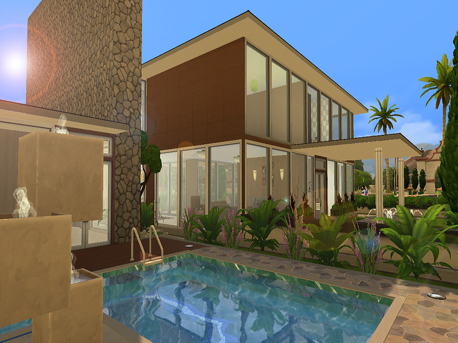 A Mixed Style of both Modern and Continental House built in Oasis Springs..... matching up the environment of it with the beautiful feel of wood and concrete.Hope you like it in your game.