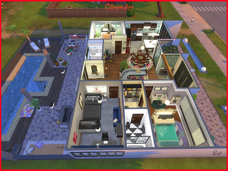 Oleander, one-story house with three bedrooms and two bathrooms, one is a suite with a walk-in closet. Open concept living room, dining room and kitchen. At the back a porch with a pool to receive family and friends.