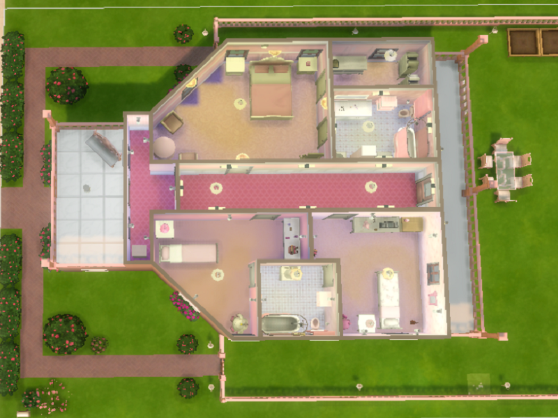Every sim should get a chance to feel like a princess, so here is their chance! This is a part of my color house series. Princess Pink features two kids bedrooms, one master bedroom and bath, and two more bathrooms. The yard is spacious with porches on both stories in the back and the front. The old fashioned furniture and pink will make your sims feel like royalty every day. It's perfect for sims with young girls especially.