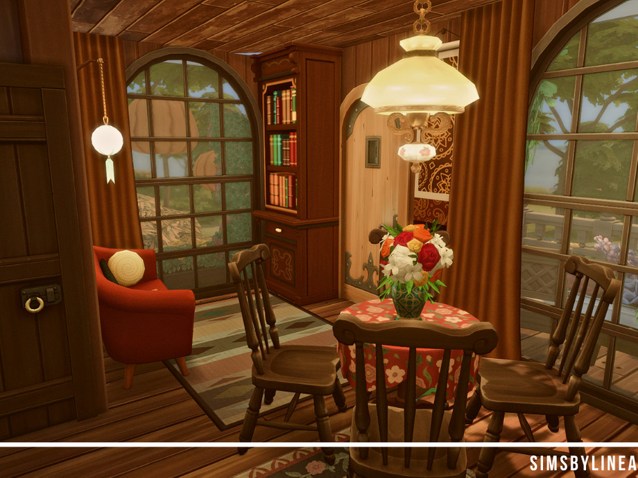 In this treehouse, it is falltime all year round! It is filled with pumpkins - hanging from the ceiling, surrounding every corner, and growing in the vegetable garden. This place is the perfect home for a plant-lover who doesn't mind solitude and thinks, their plants are their best friends.