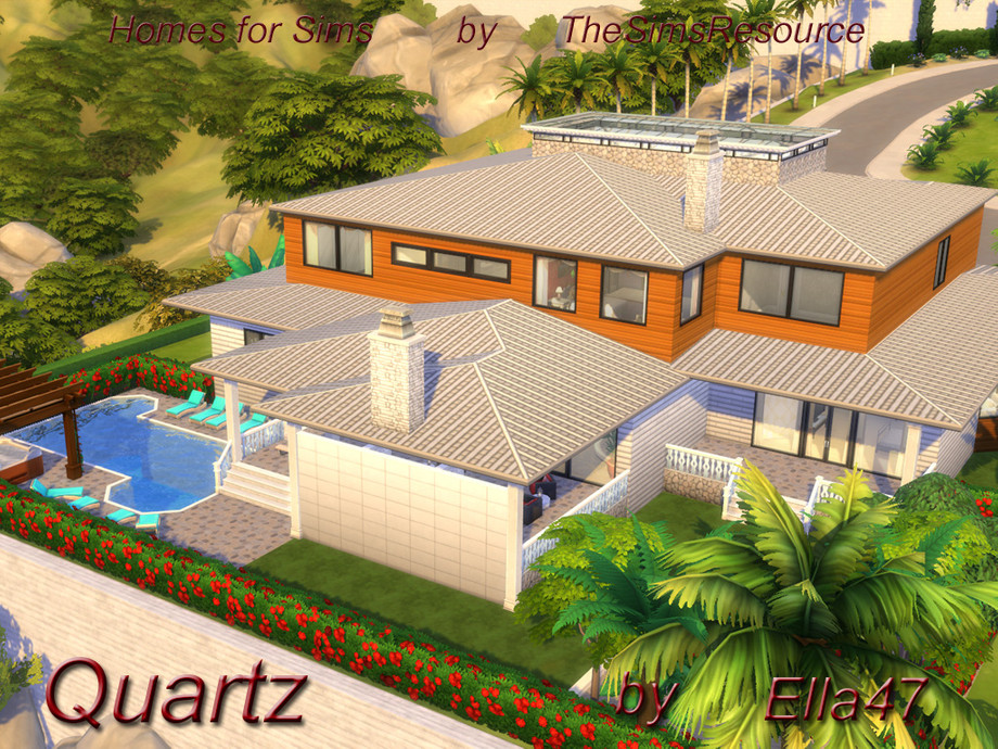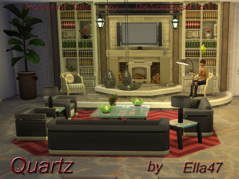 Quartz Is beatiful house For your Sims. Livingroom wit cozy Fireplace, Kitchen with Nook, Diningroom, Laundry and Office.