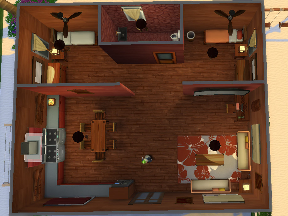 Raindrop Manor is a charming starter home for the sims who want to live on the island life. With a spacious floor plan surrounded by sand, your sims will have fun learning, loving, and building thier island lives.