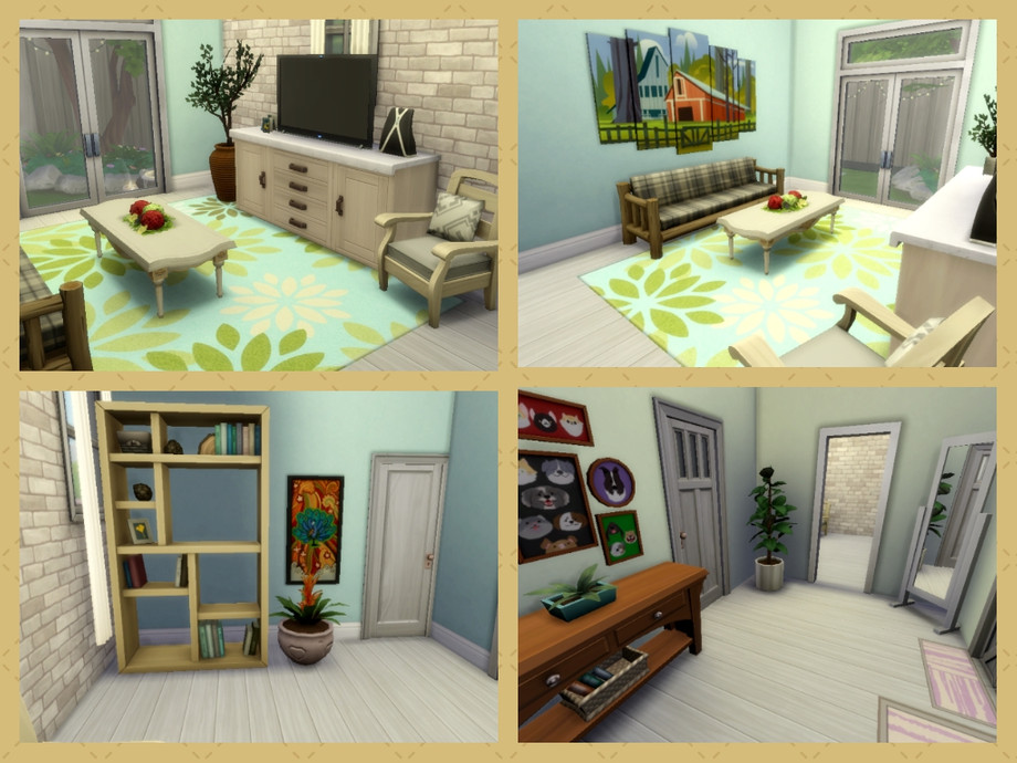 Rindle rose is a Cozy one bedroom, one Bathroom Home in Willow Creek. it also includes a study room and a separate laundry room. This house also has a yoga mat in the backyard for your sims to relax and meditate.