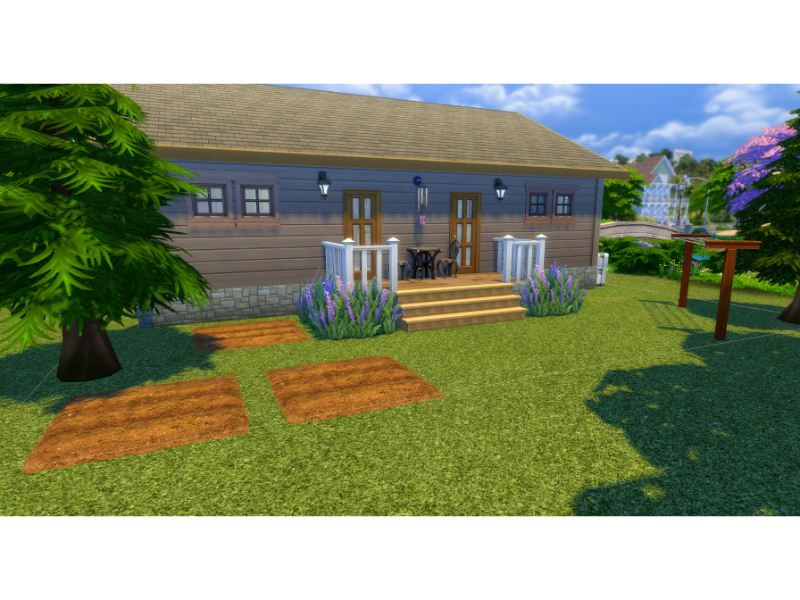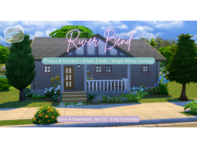River Bend is a cosy single-storey residential cottage featuring 2 bedrooms each with a private en-suite plus an additional guest WC. The open-plan kitchen, dining, and living space creates a warm central hub, while a dedicated laundry room adds practical realism. Outside, a small garden with planting plots offers space for gardening gameplay.