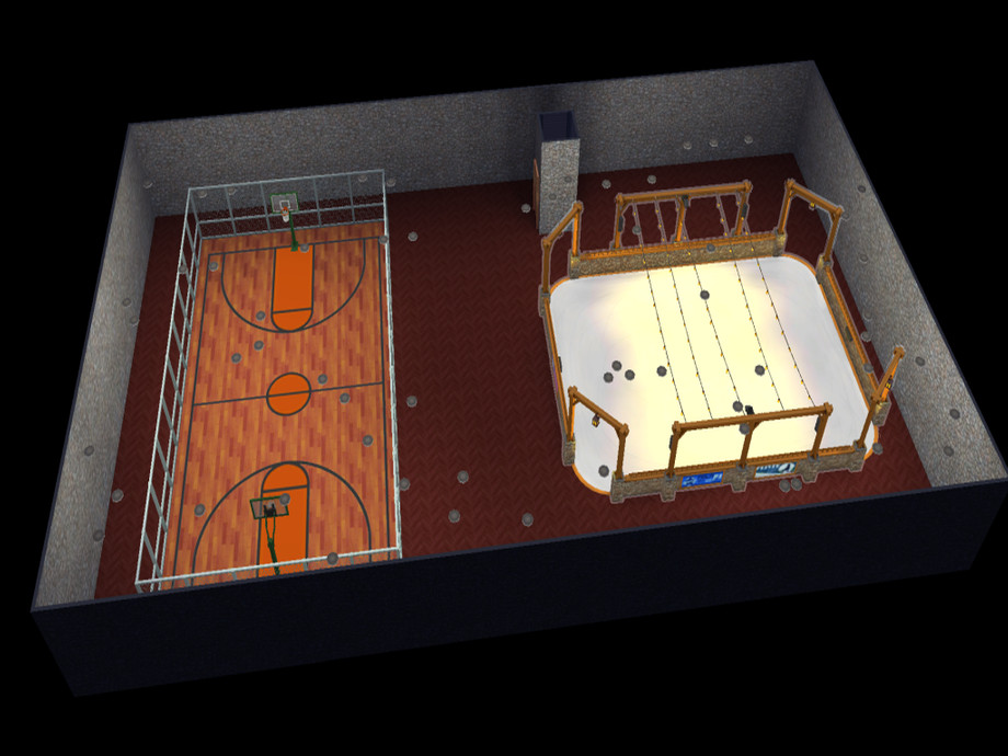 Basement 2 has a basketball court and iceskating rink.
