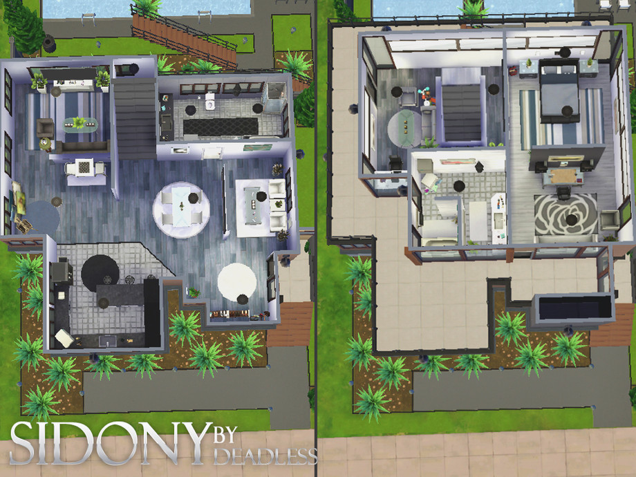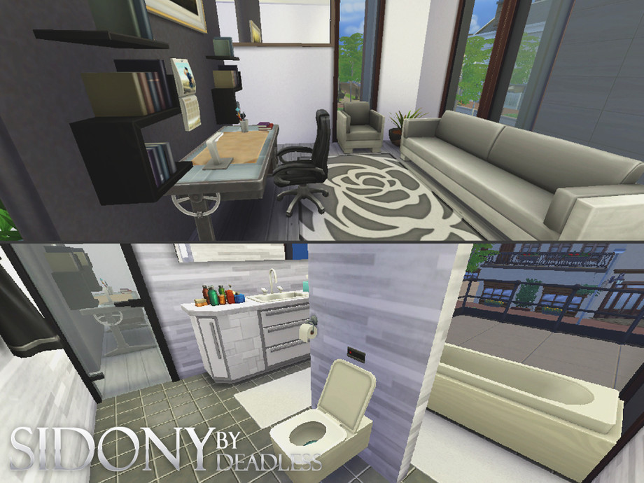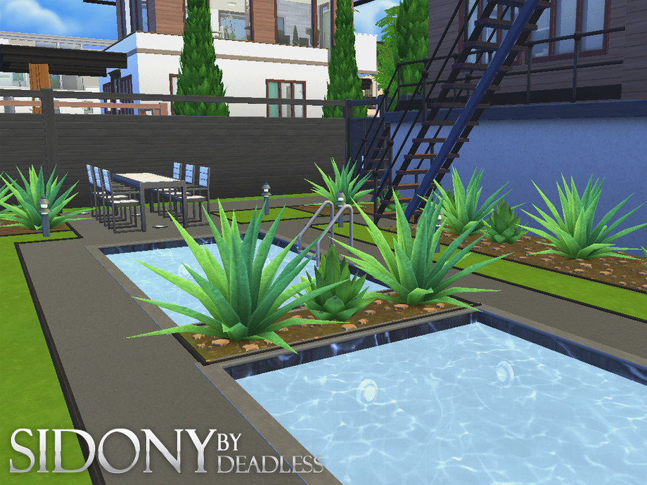 This house is the best choice for a single sim or a couple. It has a small garden where your sims can swim and have a great time with their friends and family. The interior is perfect for the fashion oriented sims with its dark colours and modern design.