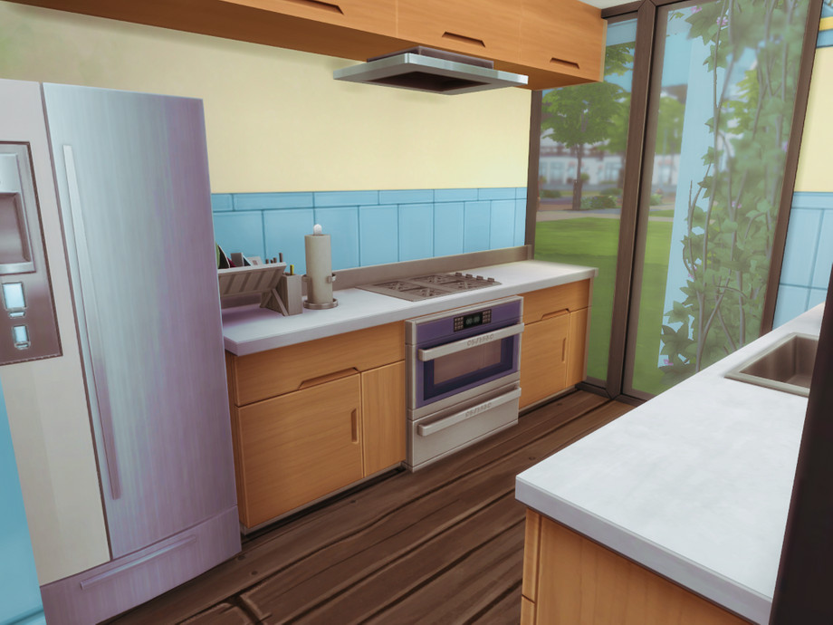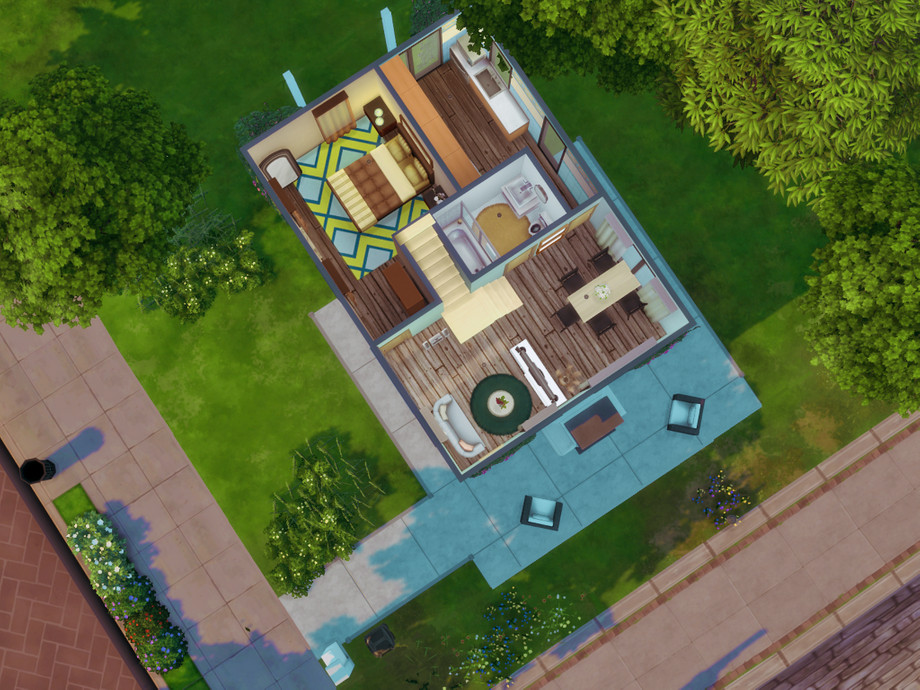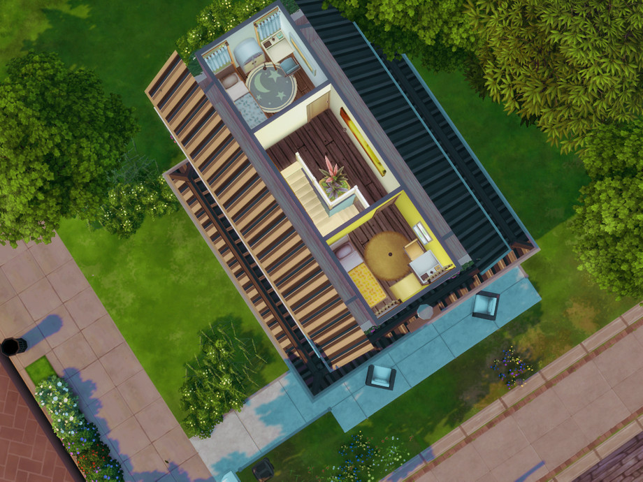 *A trick was used in the building. The side roofs are set on half-walls. This means that if you change the structure of the building in any way, these roofs will be deleted. If this happens, look for Kate Emerald's "Roof on Half Walls" tutorial to fix it.